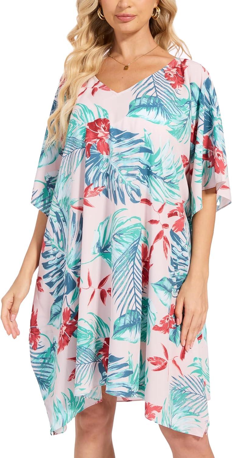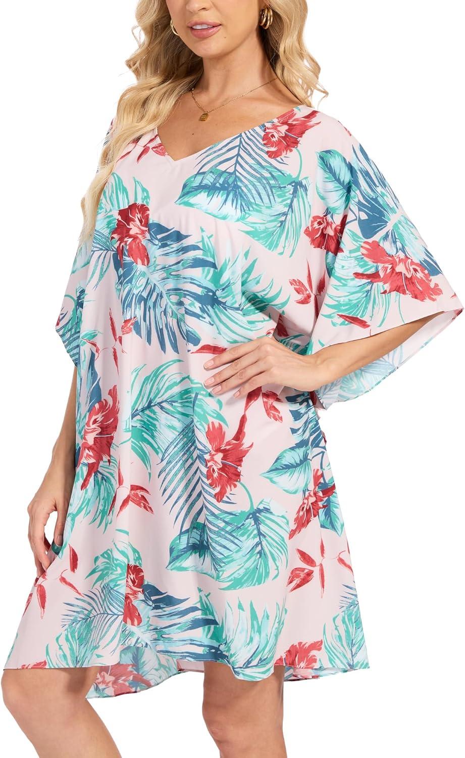 imageMoss Rose Beach Kaftan Dresses for Women V Neck Summer Swimsuit Cover up Beach Vacation ClothingAred