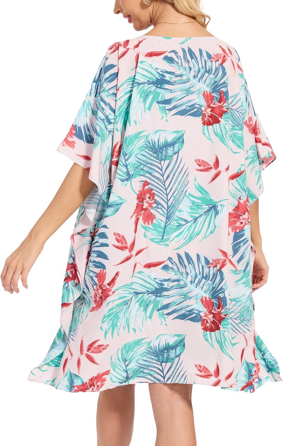 imageMoss Rose Womens Beach Kaftan Dresses Kimono Swimsuit Cover up for Bathing Suit with Floral PatternBred