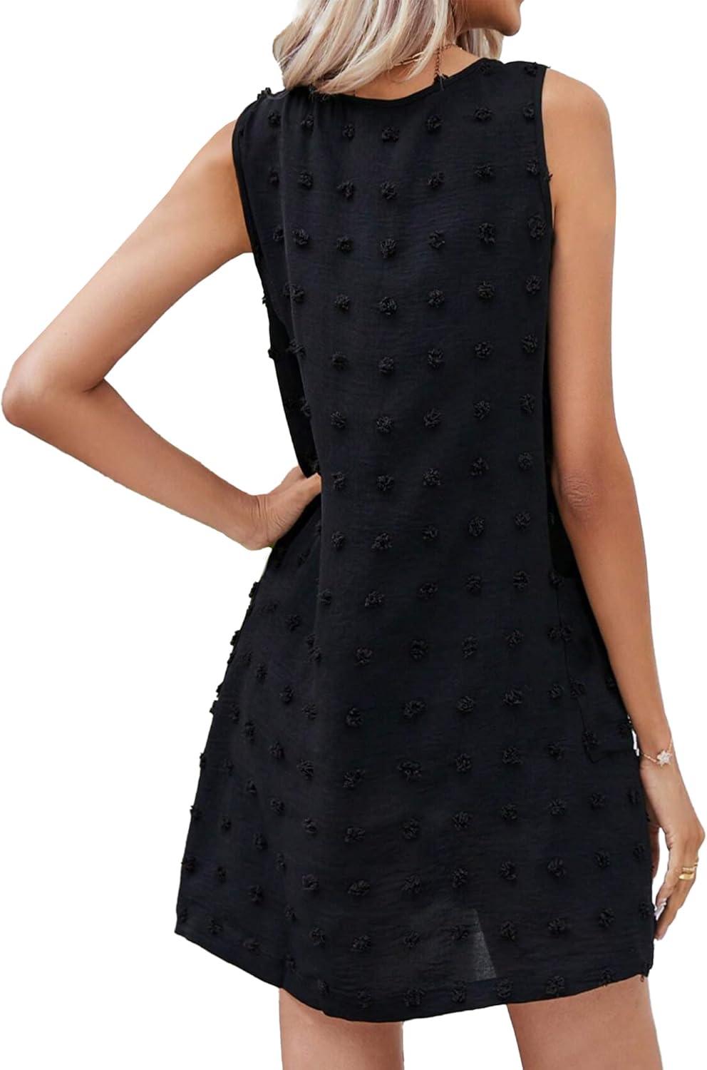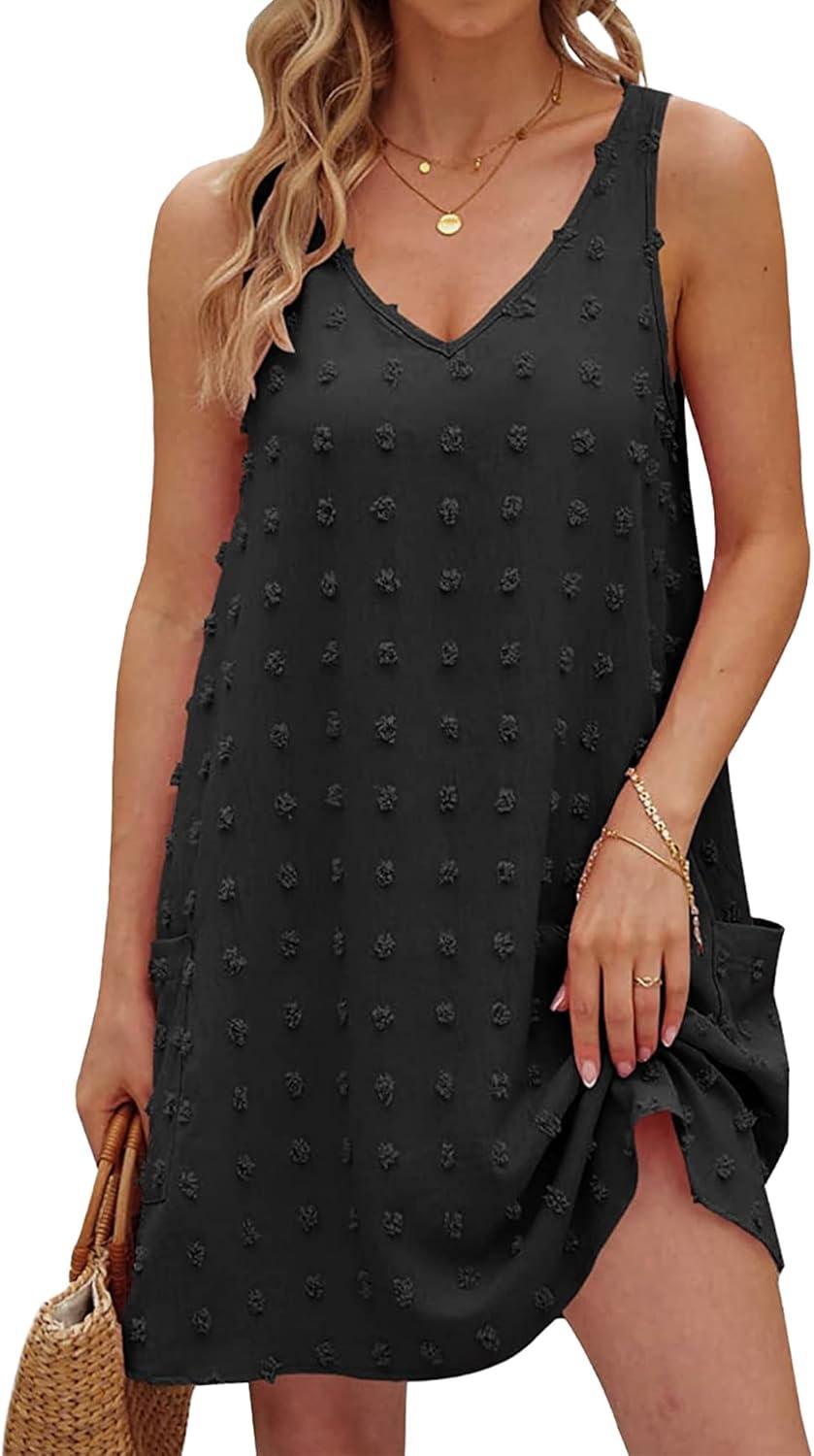 Moss Rose Beach Vacation Clothes for Women Sundresses Swiss Polka Dot Beach Cover Up V Neck Tank Dress with Pockets(Black)