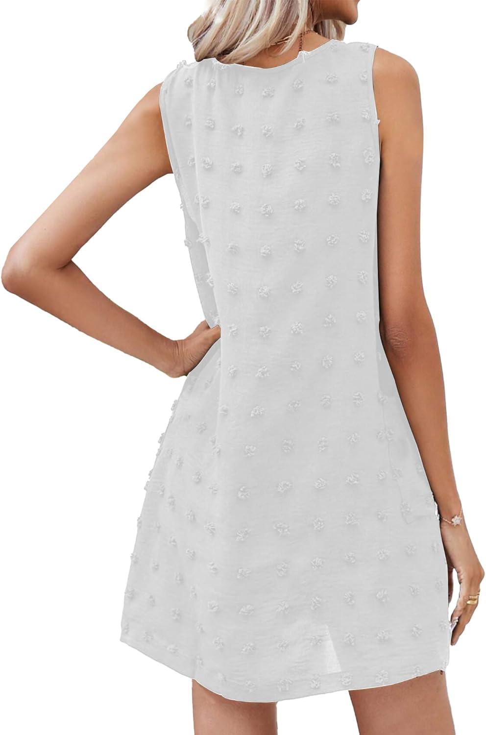 Moss Rose Beach Vacation Clothes for Women Sundresses Swiss Polka Dot Beach Cover Up V Neck Tank Dress with Pockets(Off-white)