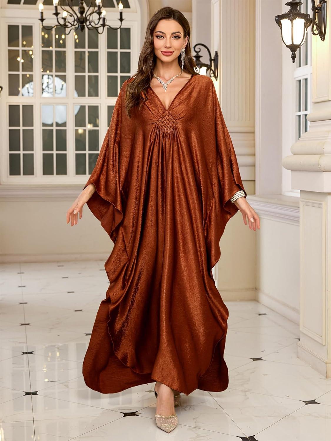 Moss Rose Caftan Coverup Dresses for Women V Neck Summer Swimsuit Kaftan Plus Size Maxi Beach Vacation Clothes(C-brown)