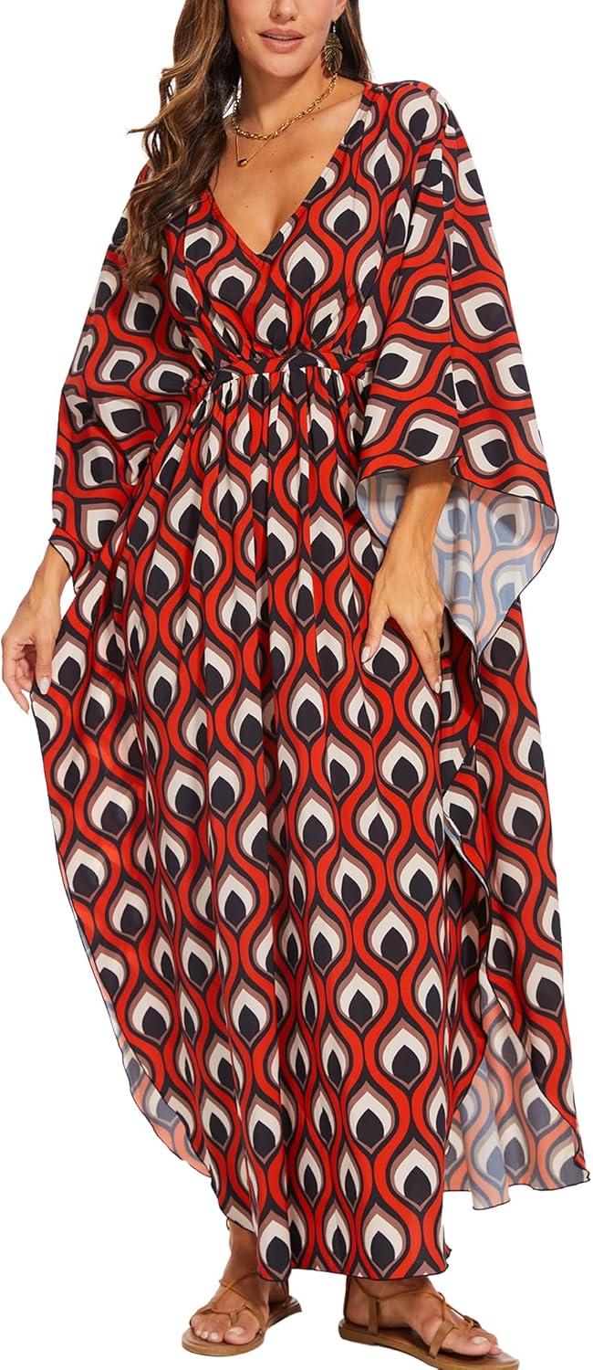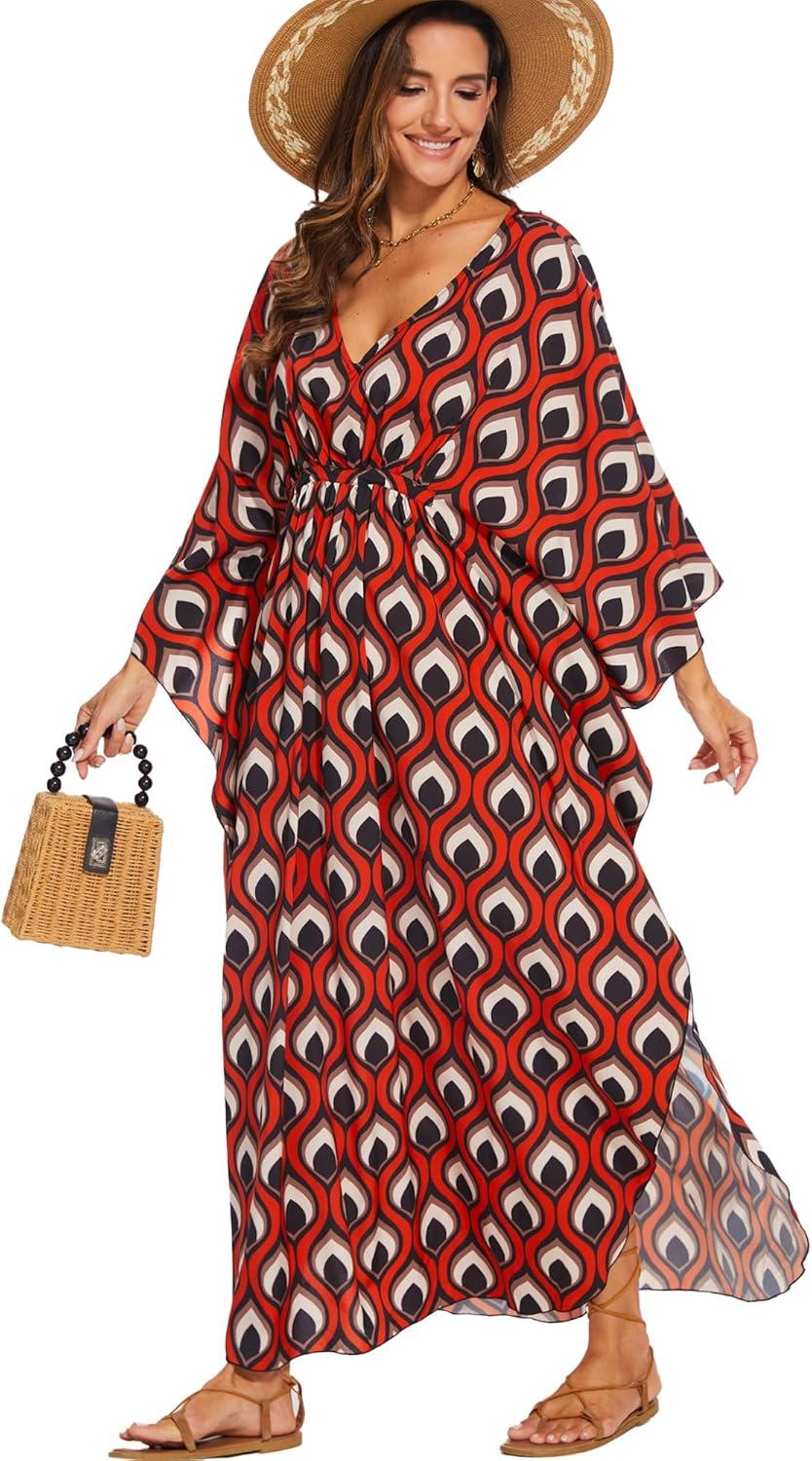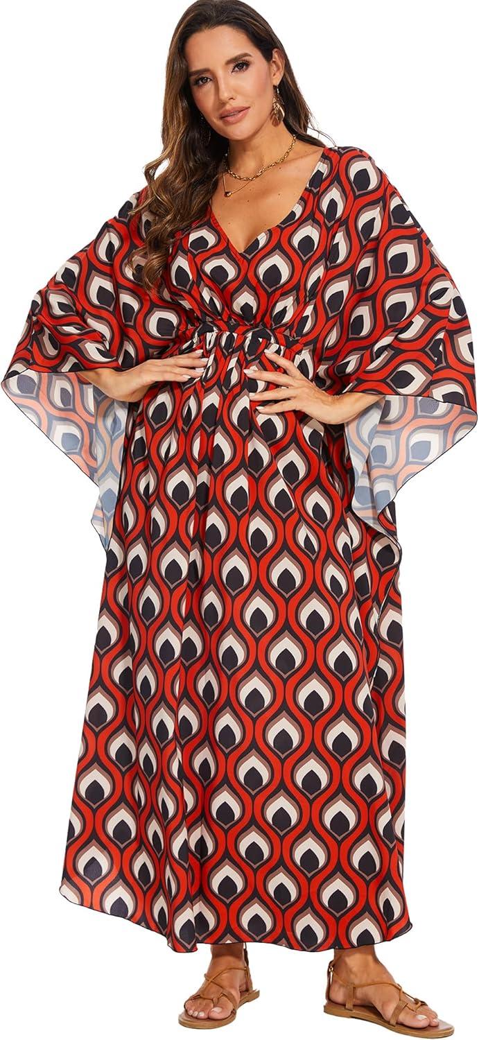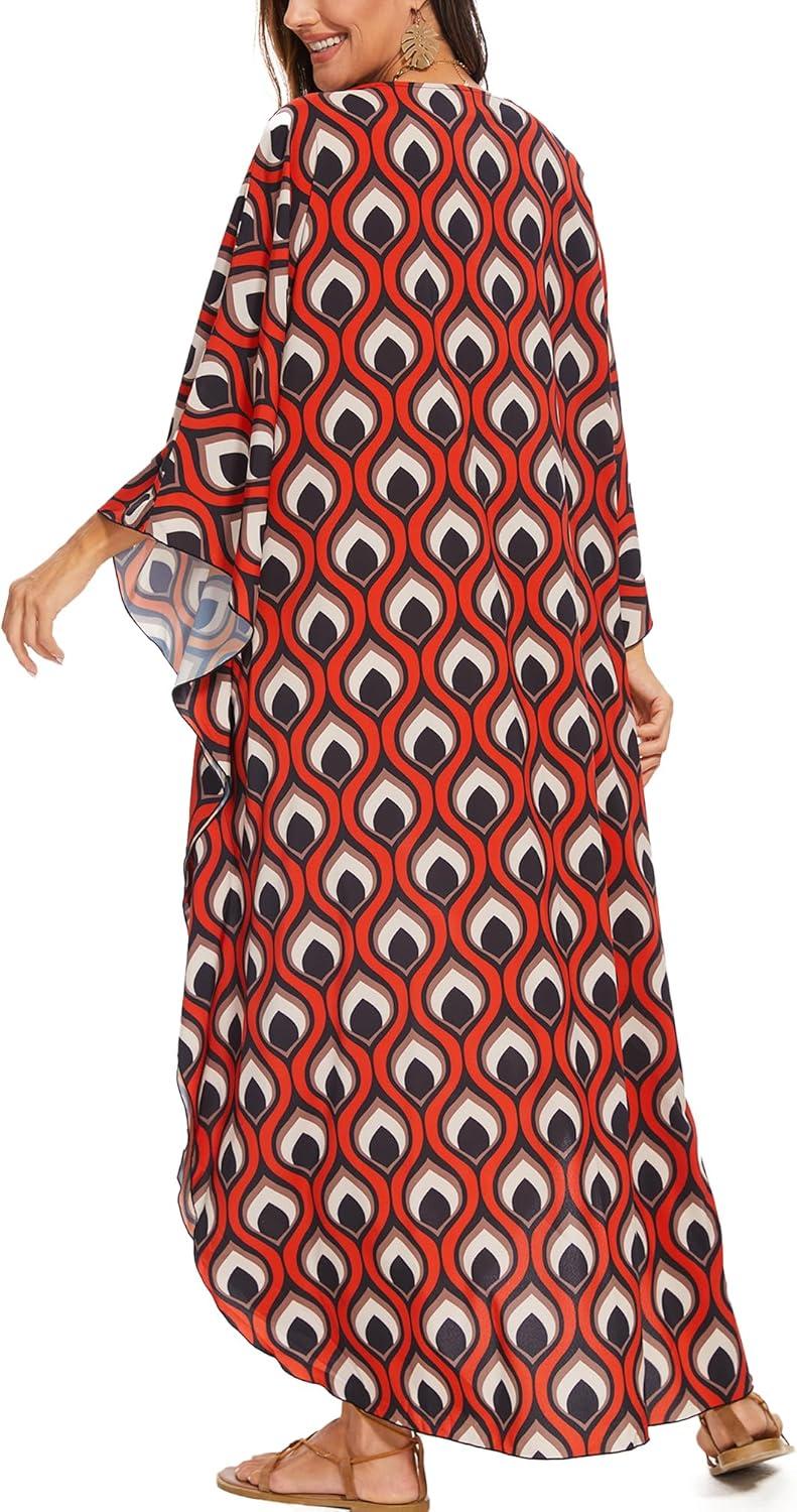 Moss Rose Kaftan Dresses for Women V Neck Summer Swimsuit Cover up Caftan Maxi Beach Dresses(A-black Flower*)