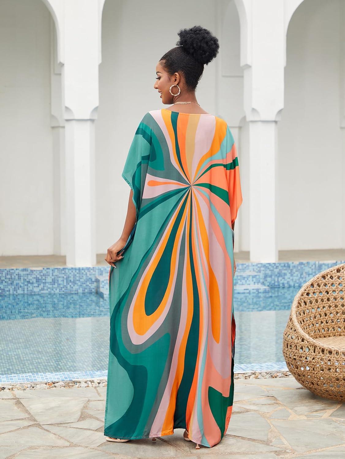 imageMoss Rose Kaftan Dresses for Women V Neck Summer Swimsuit Cover up Caftan Maxi Beach DressesAcolorful 1
