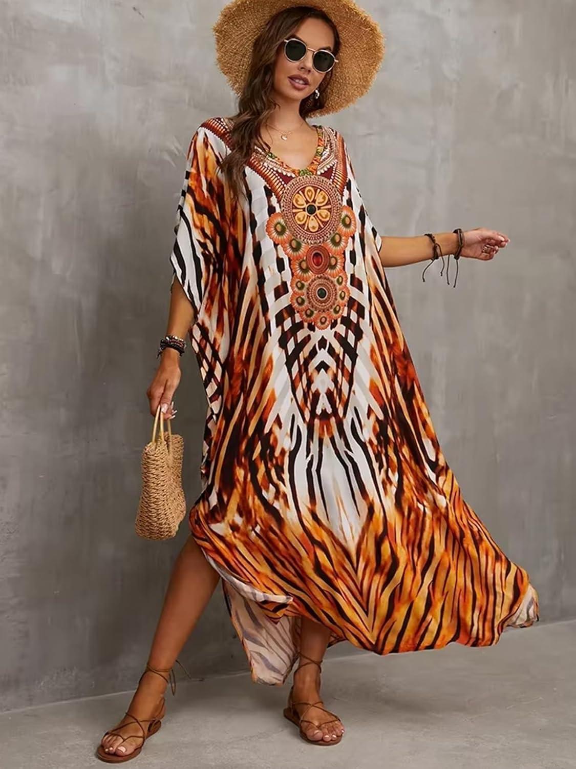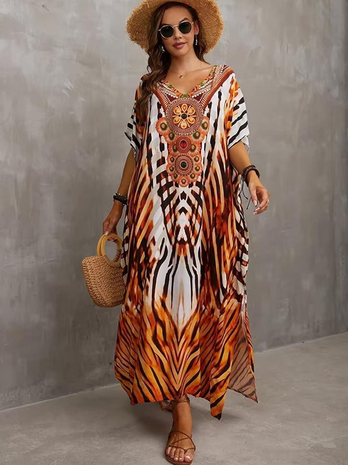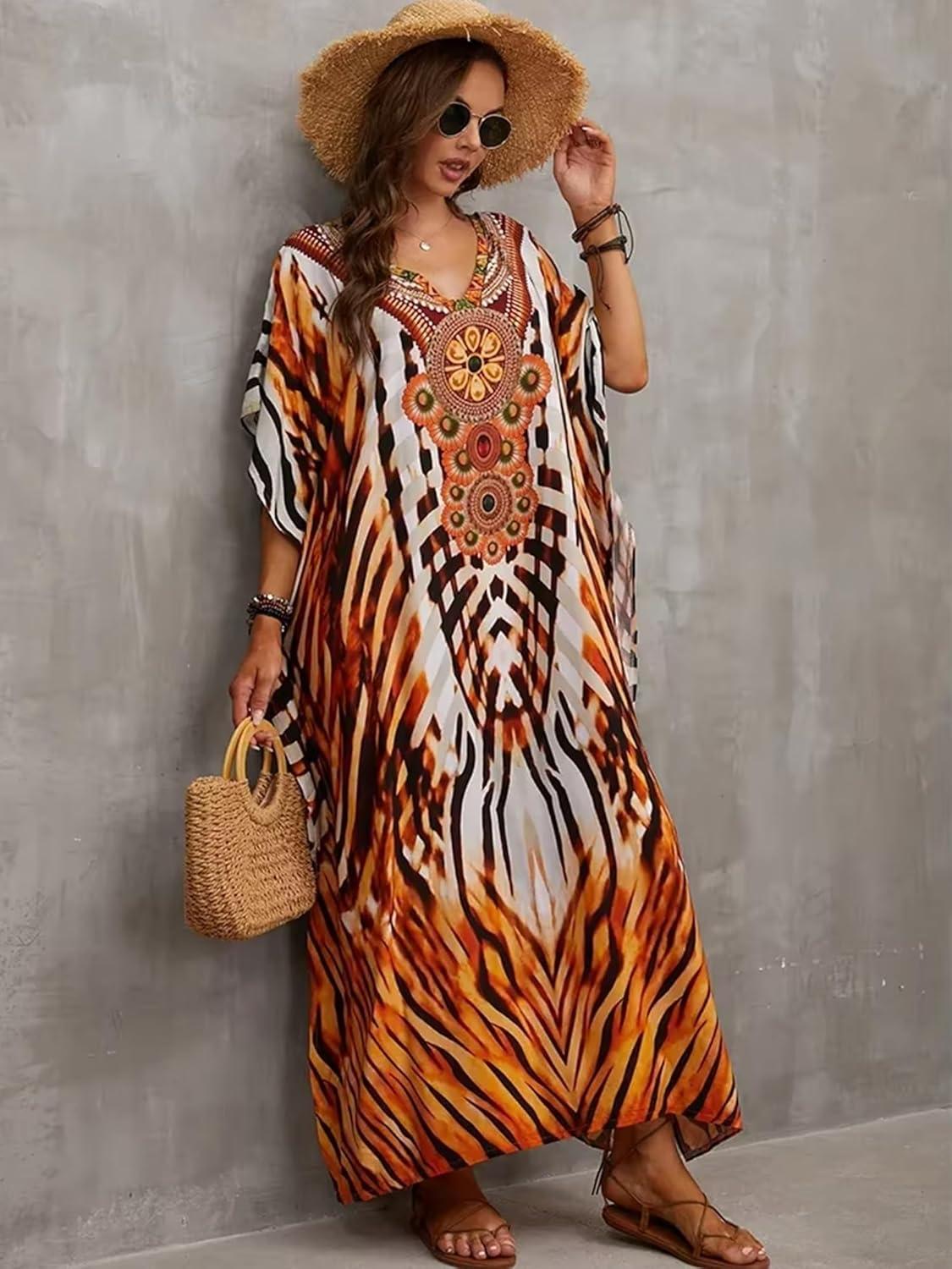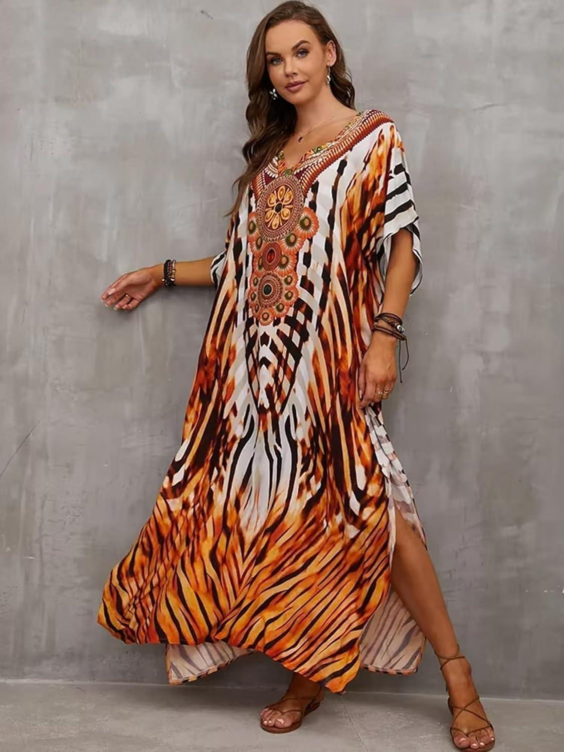 Moss Rose Kaftan Dresses for Women V Neck Summer Swimsuit Cover up Caftan Maxi Beach Dresses(A-colorful 10)