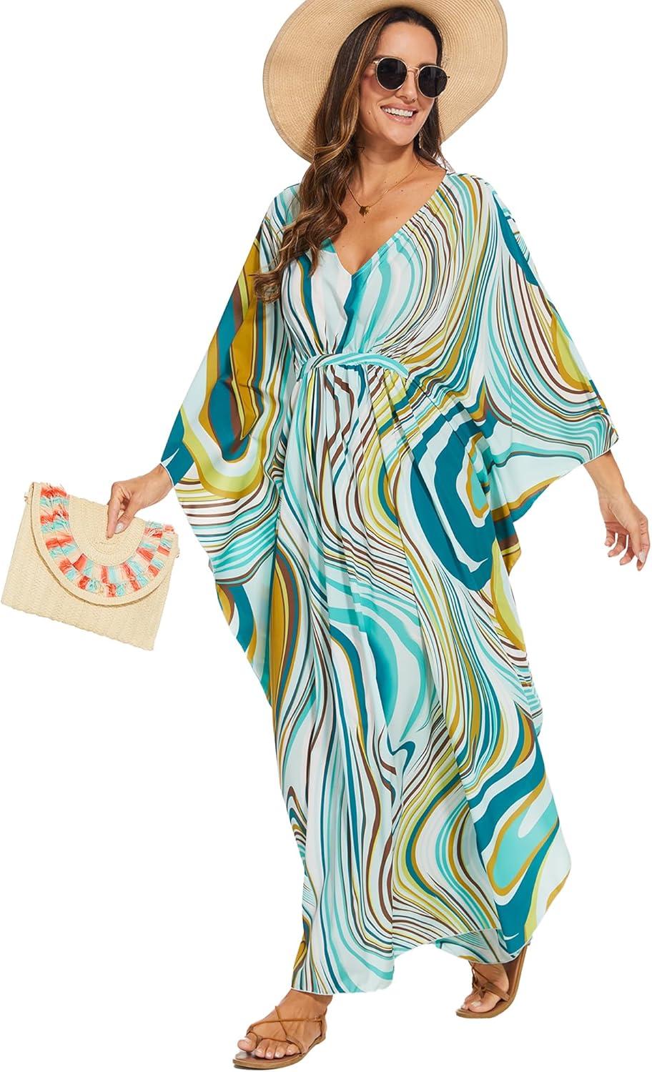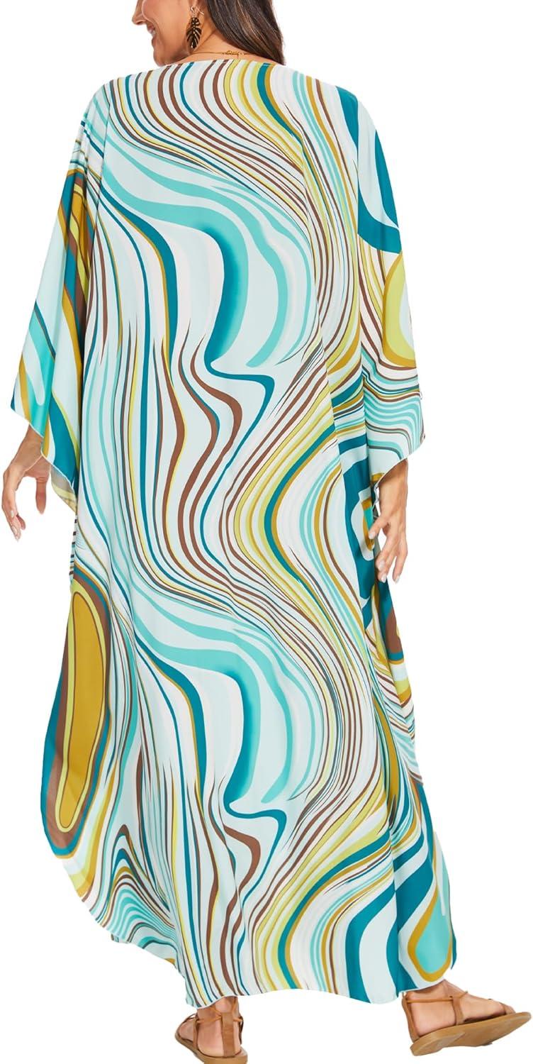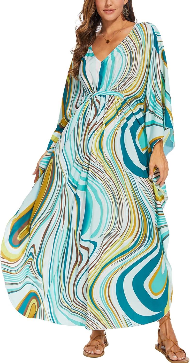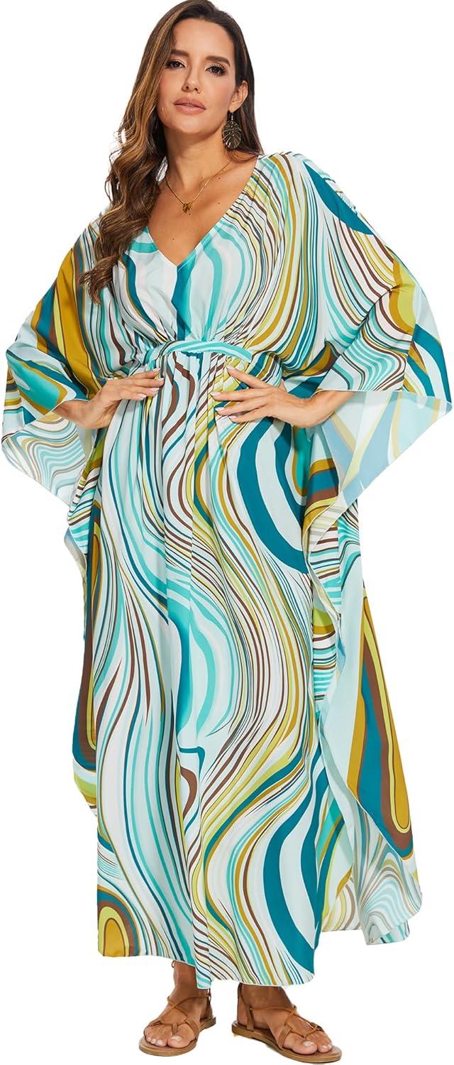 Moss Rose Kaftan Dresses for Women V Neck Summer Swimsuit Cover up Caftan Maxi Beach Dresses(A-multicolor)