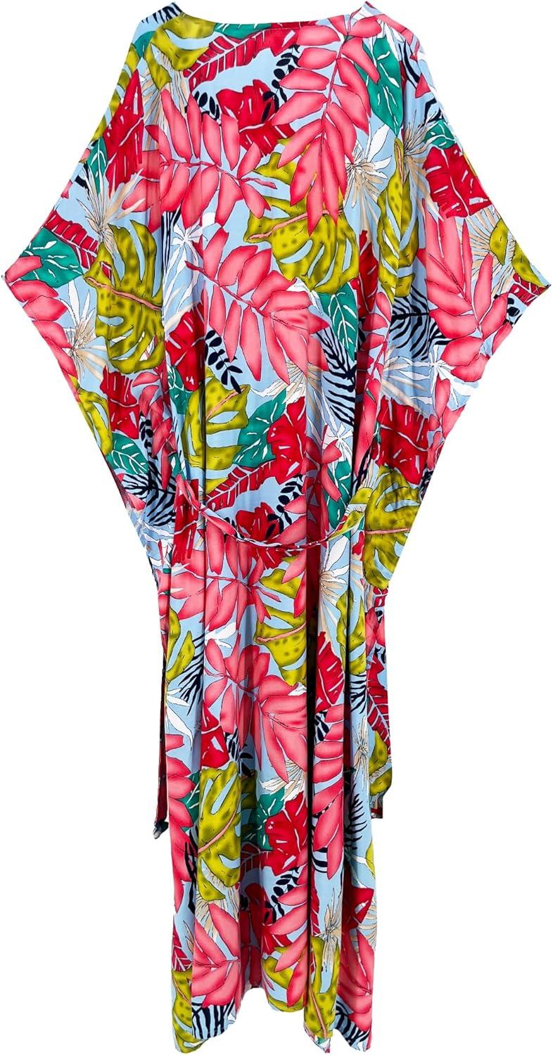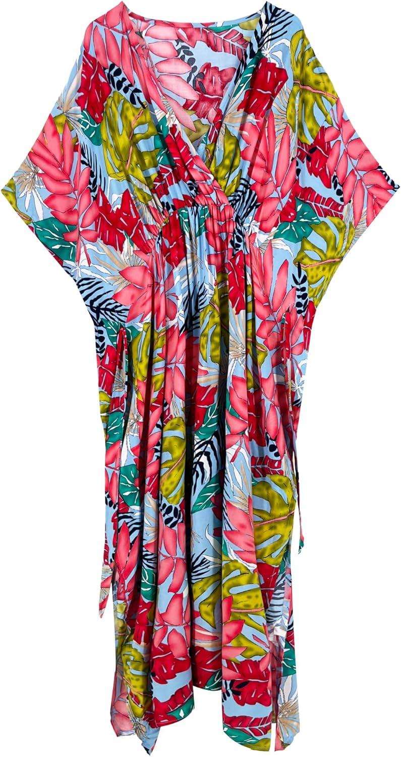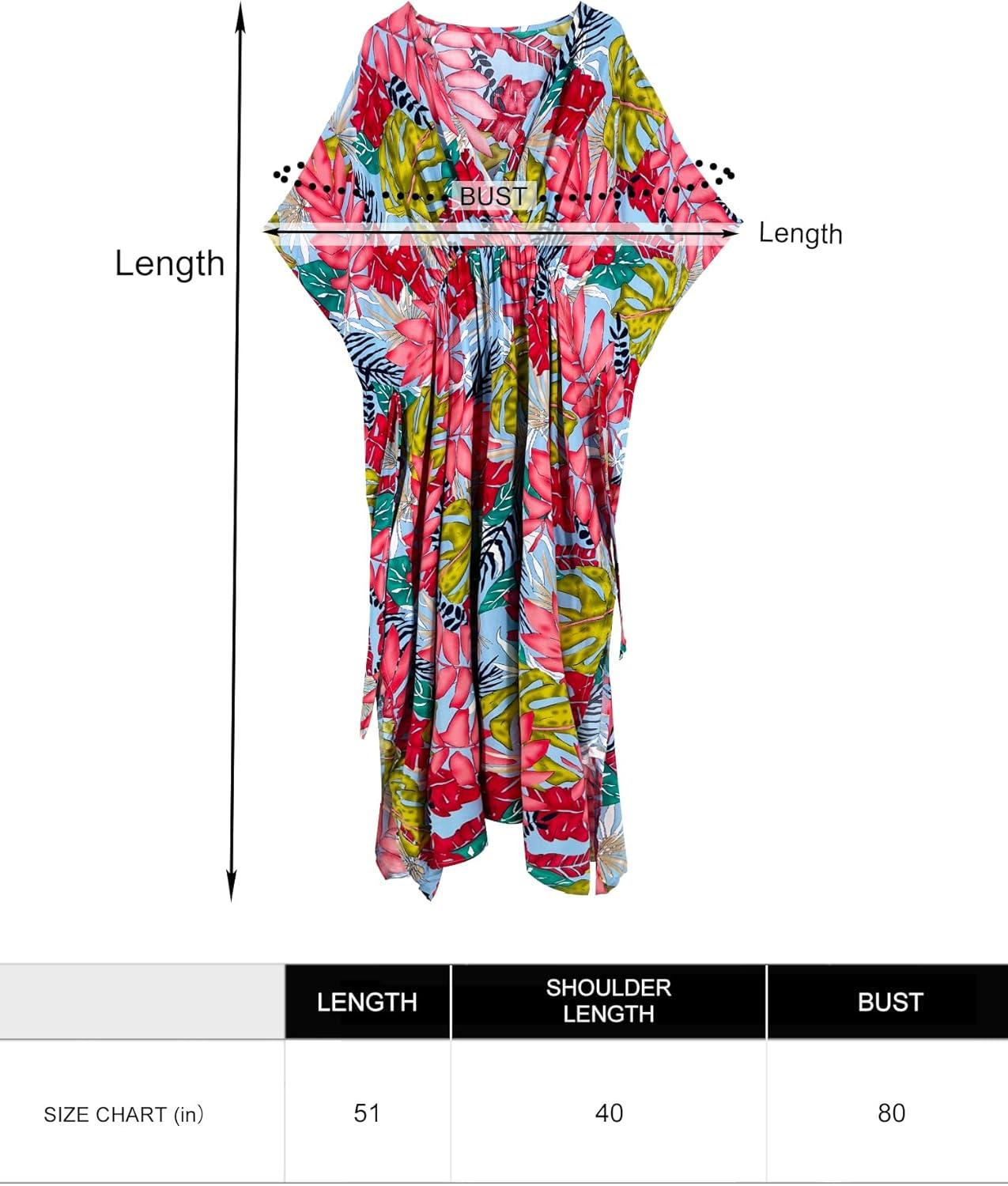 Moss Rose Kaftan Dresses for Women V Neck Summer Swimsuit Cover up Caftan Maxi Beach Dresses(C-red Floral)