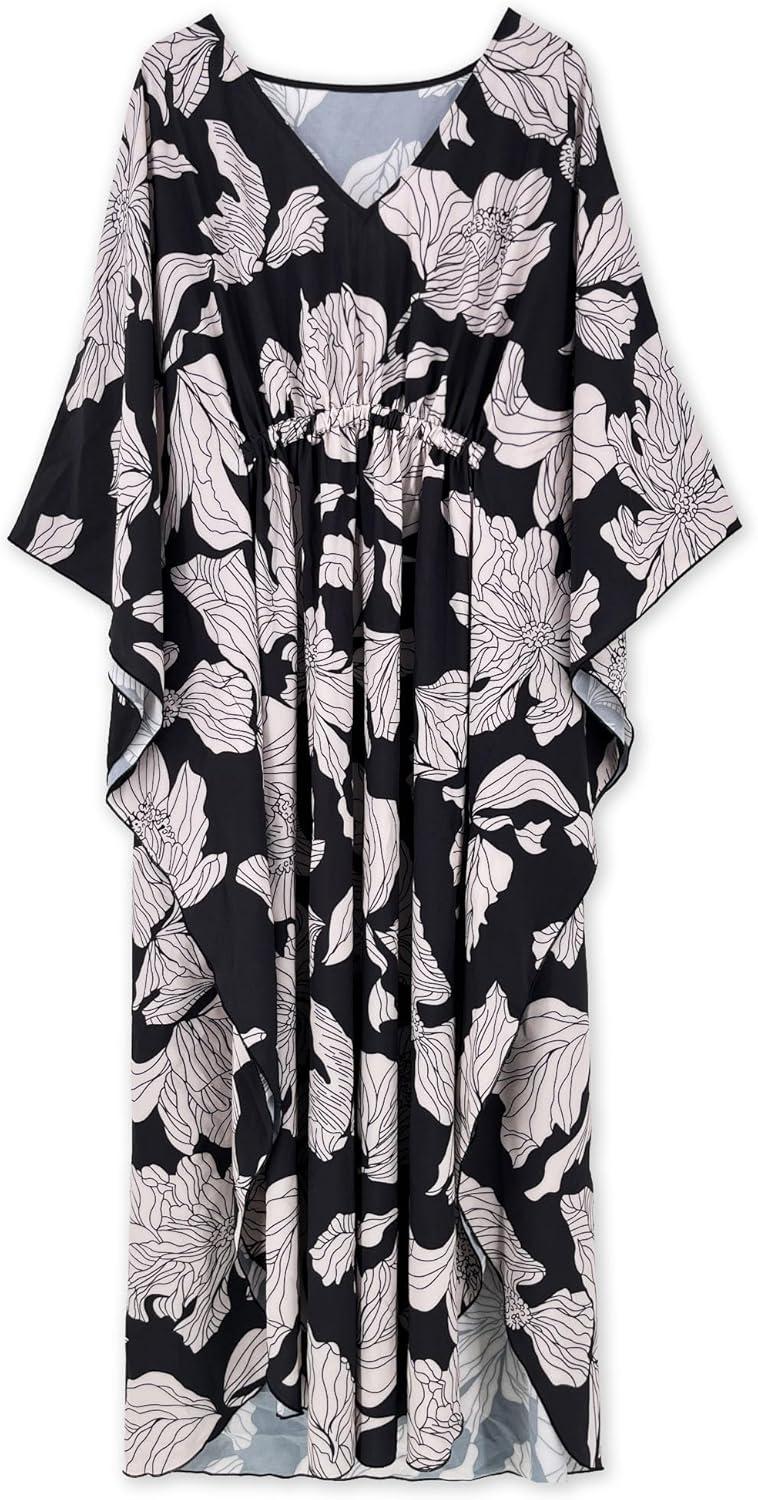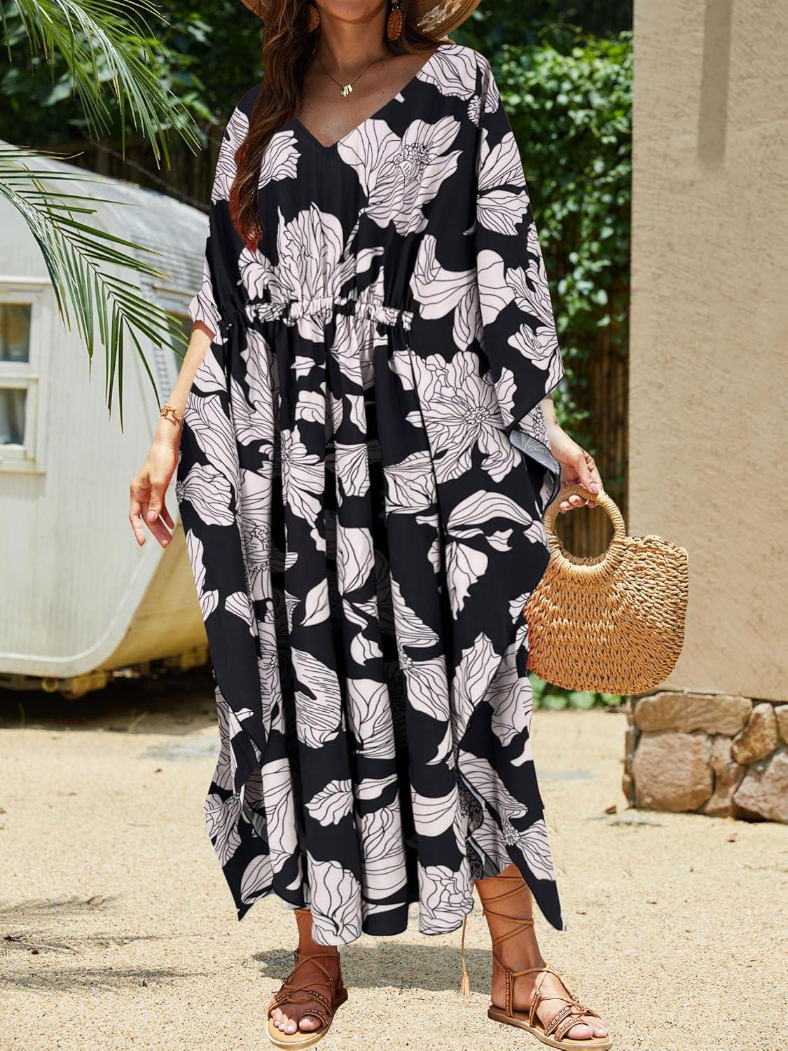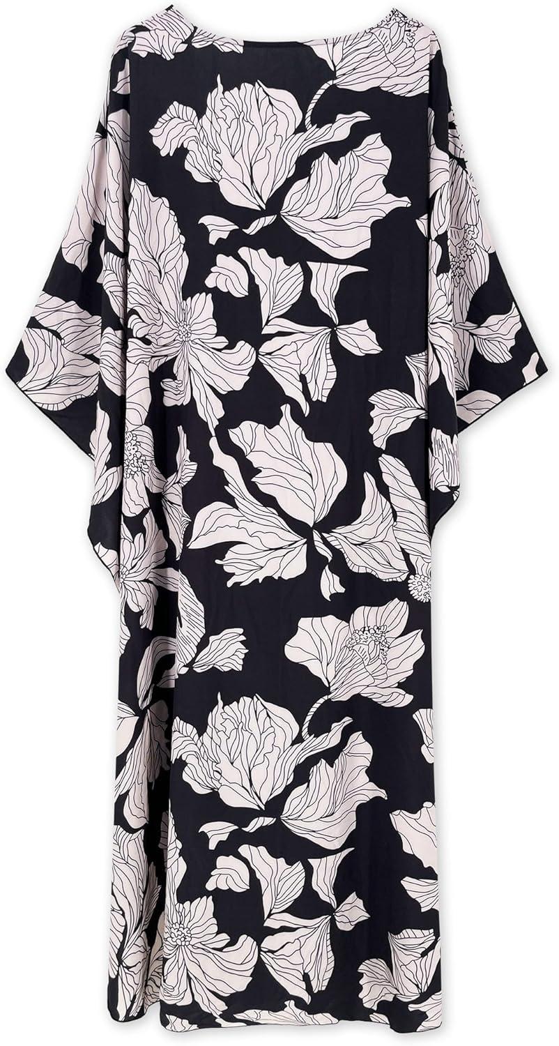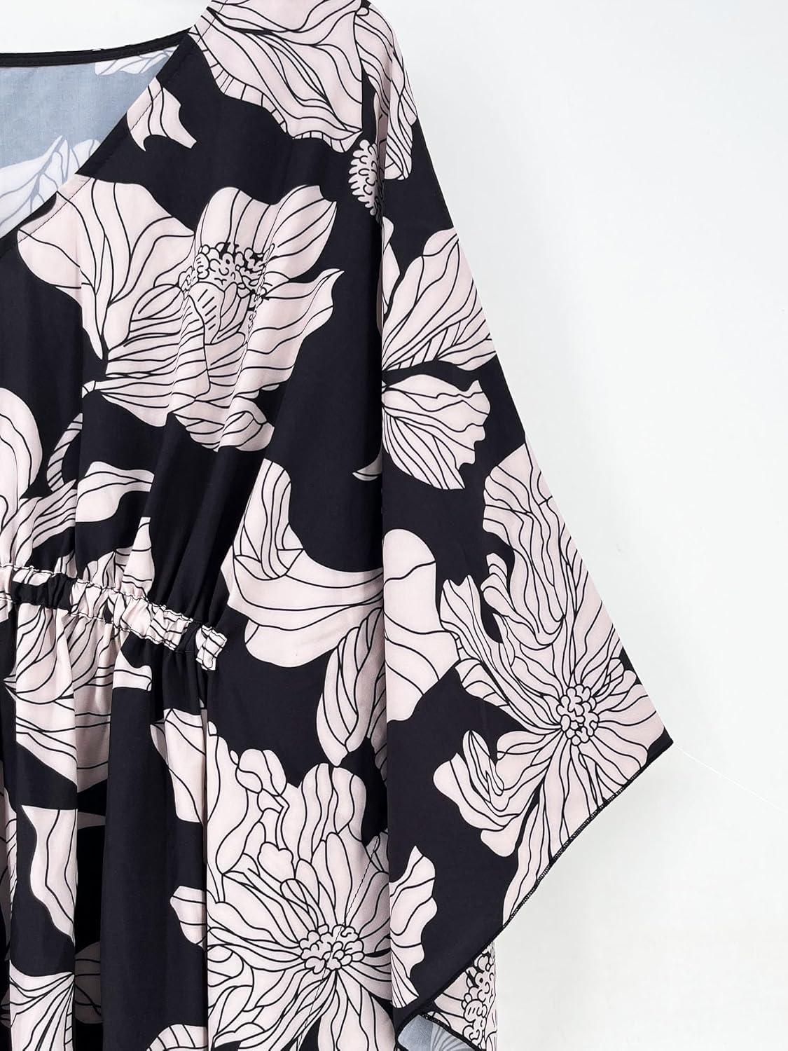 Moss Rose Kaftan Dresses for Women V Neck Summer Swimsuit Cover up Caftan Maxi Beach Dresses(D Black Beige)