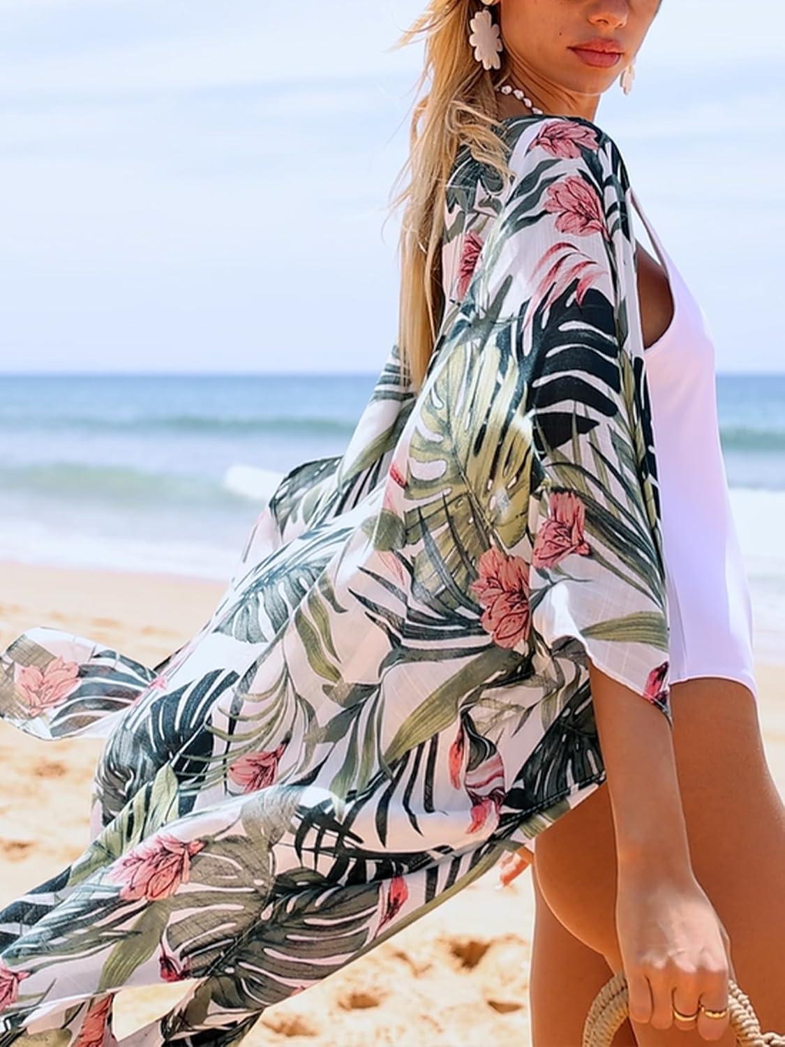 Moss Rose Women Summer Bikini Kimono Bathing Suit Cover Ups for Swimwear(A Palm Leaf)