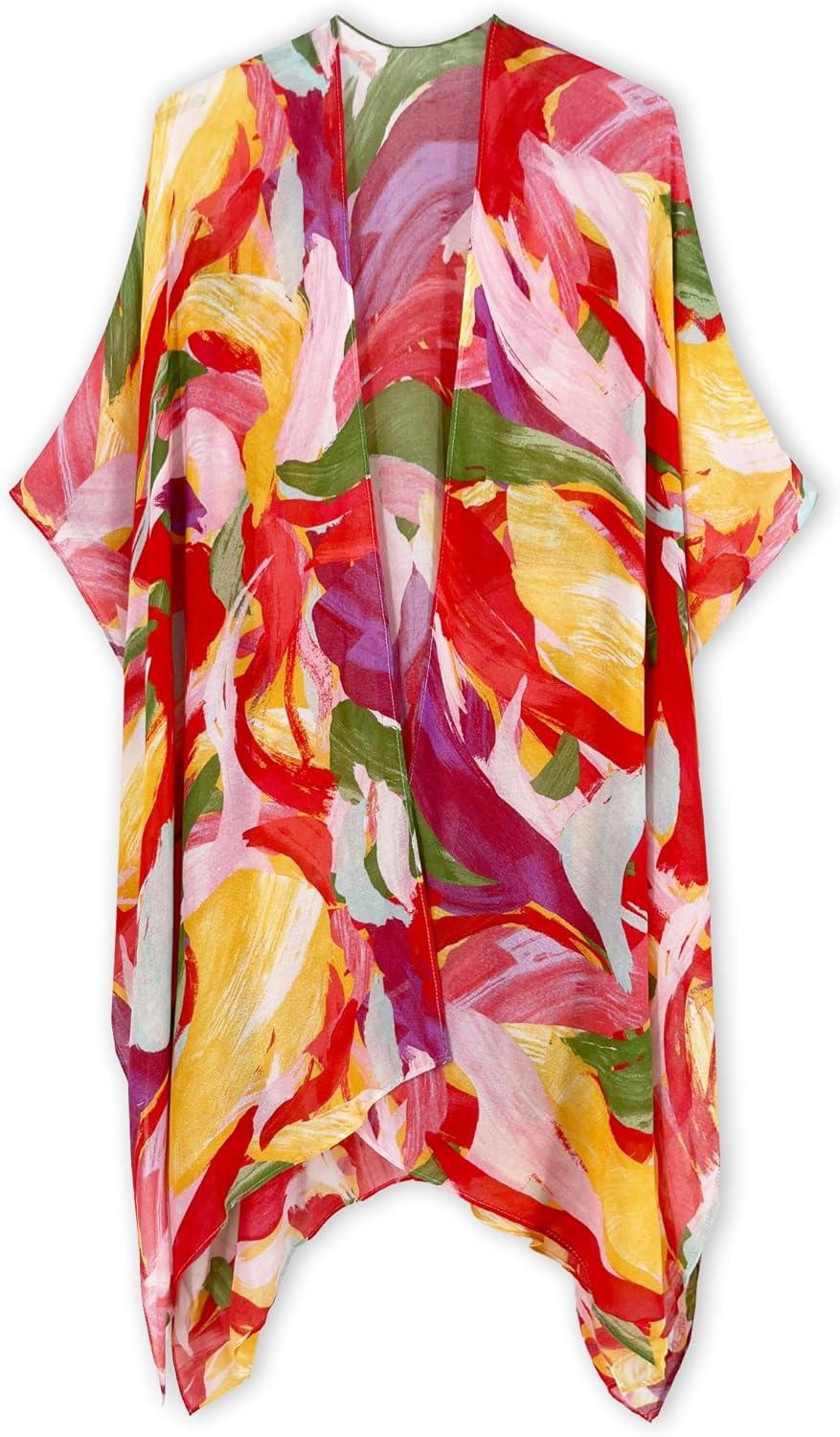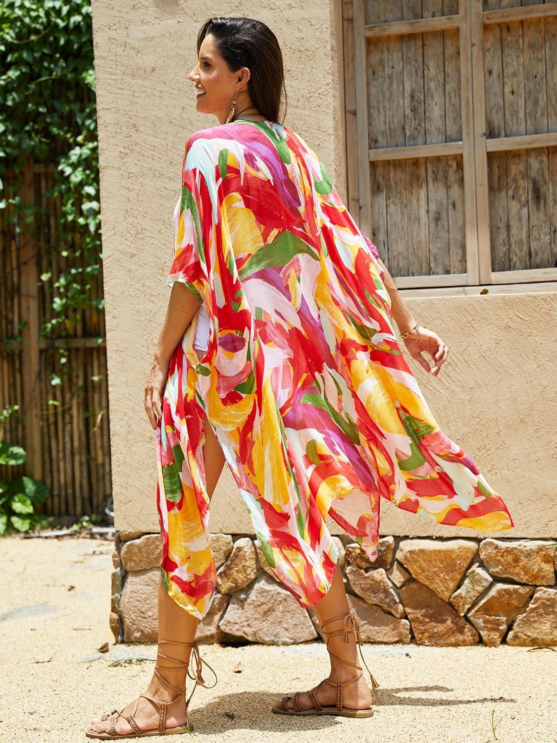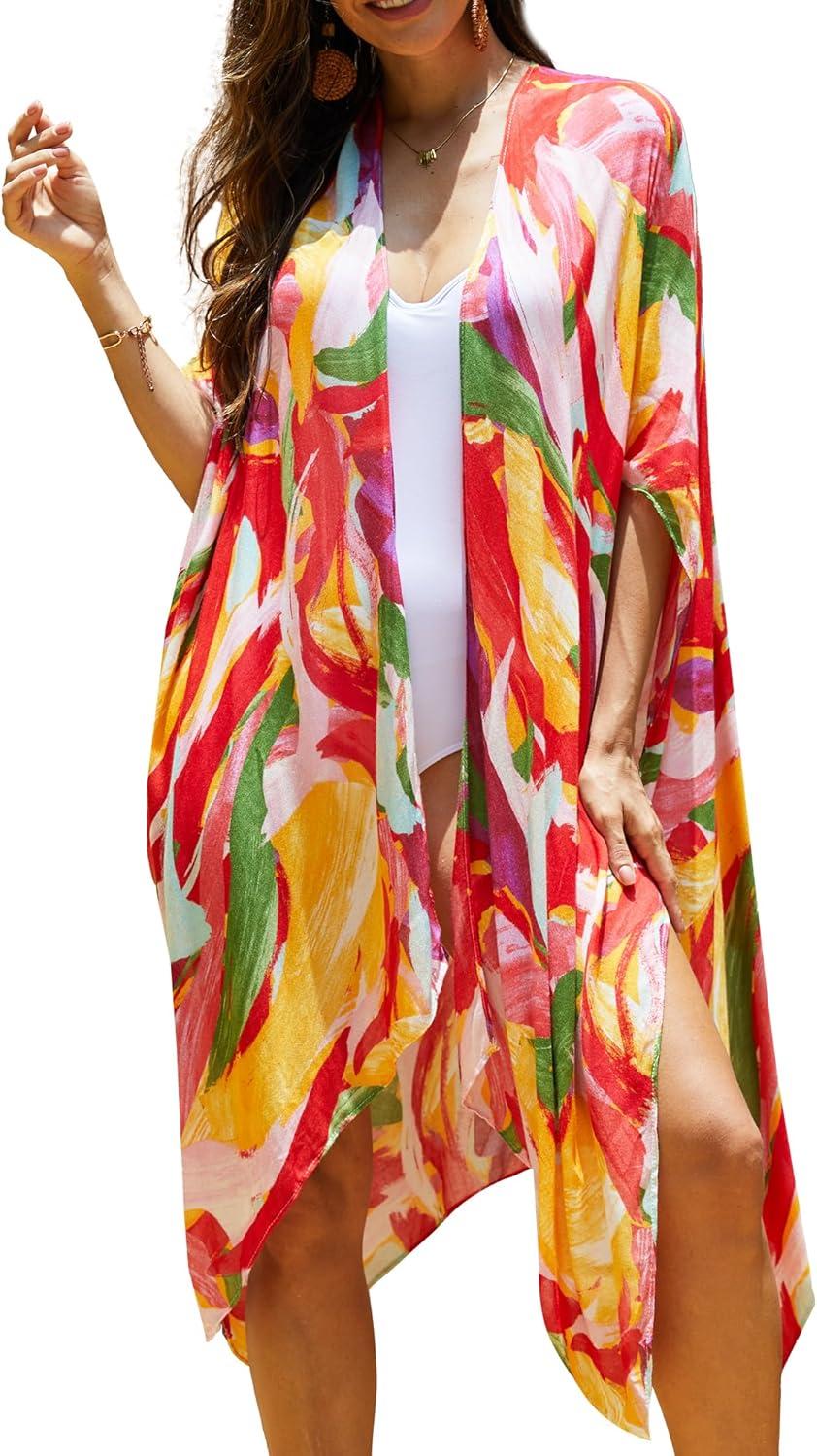 Moss Rose Women Summer Bikini Kimono Bathing Suit Cover Ups for Swimwear(B Colorful Red 1)