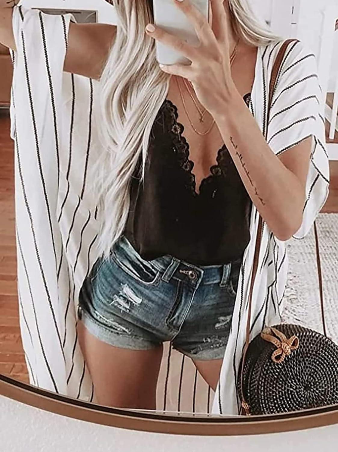Moss Rose Women Summer Bikini Kimono Bathing Suit Cover Ups for Swimwear(C Black White 1)