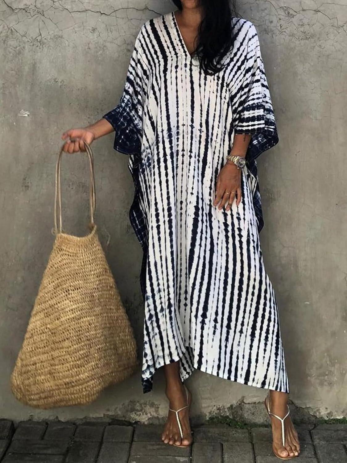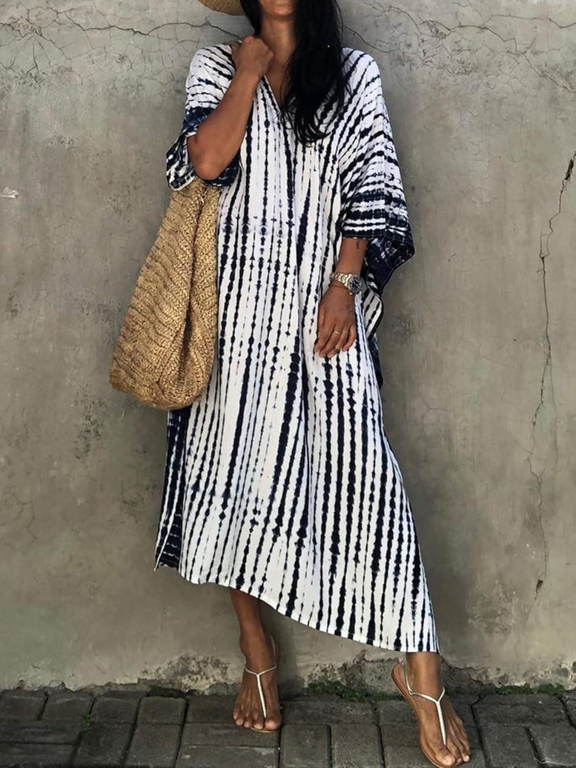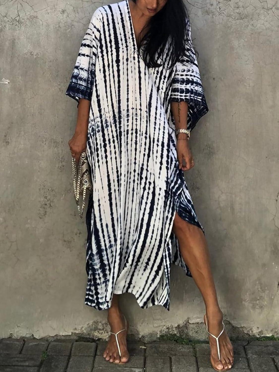 Moss Rose Women Summer Caftan Coverups Dress Kimono Beach Vacation Wear V Neck Print Maxi Boho Dress(Z Colorful 3)