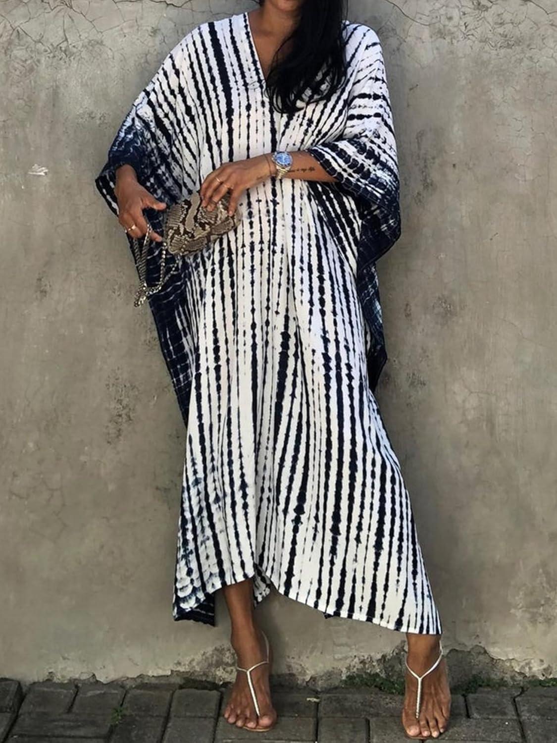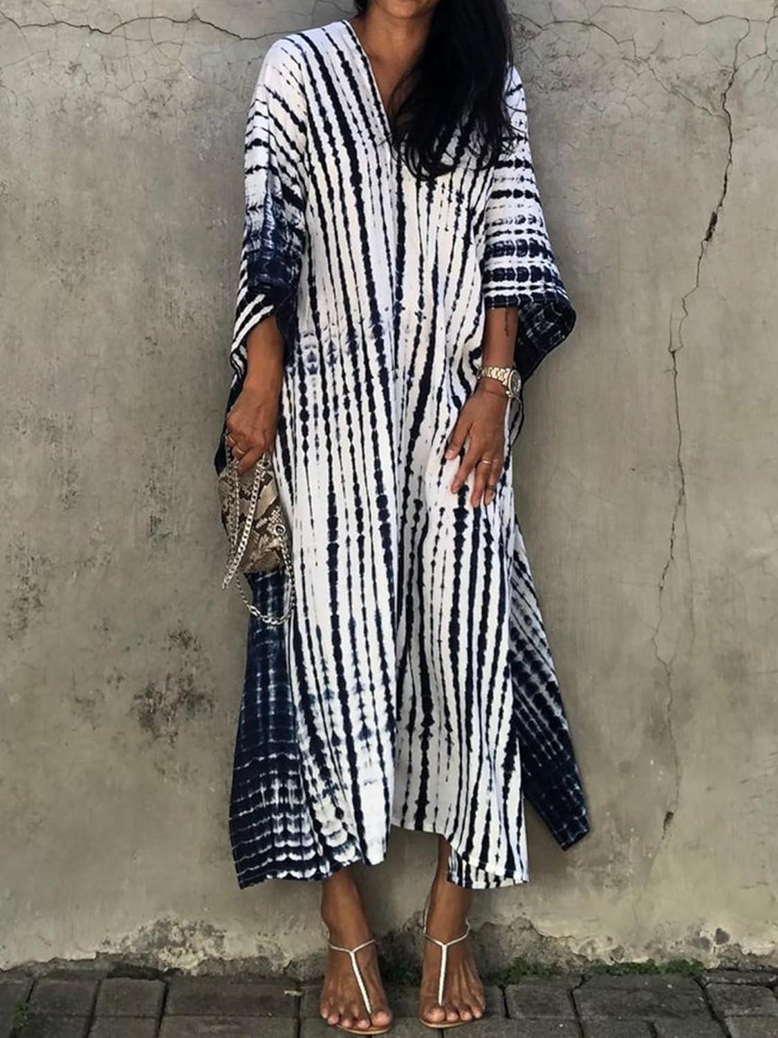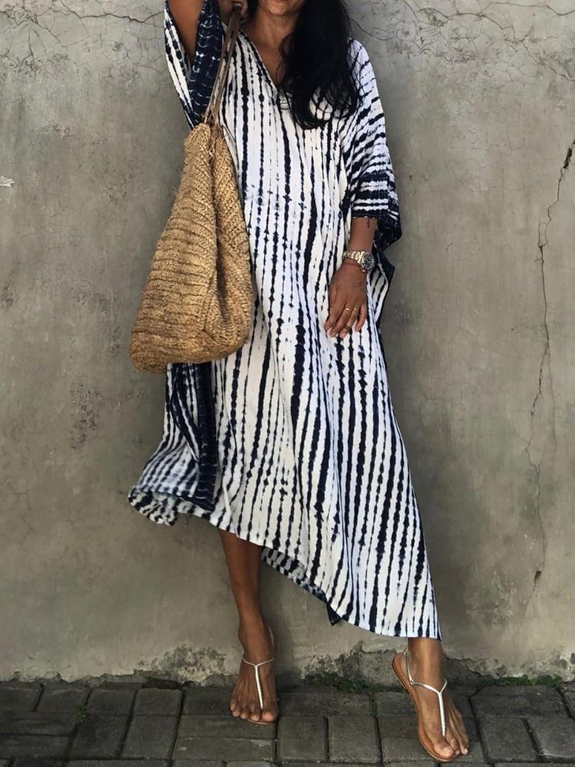 Moss Rose Women Summer Caftan Coverups Dress Kimono Beach Vacation Wear V Neck Print Maxi Boho Dress(Z Colorful 3)