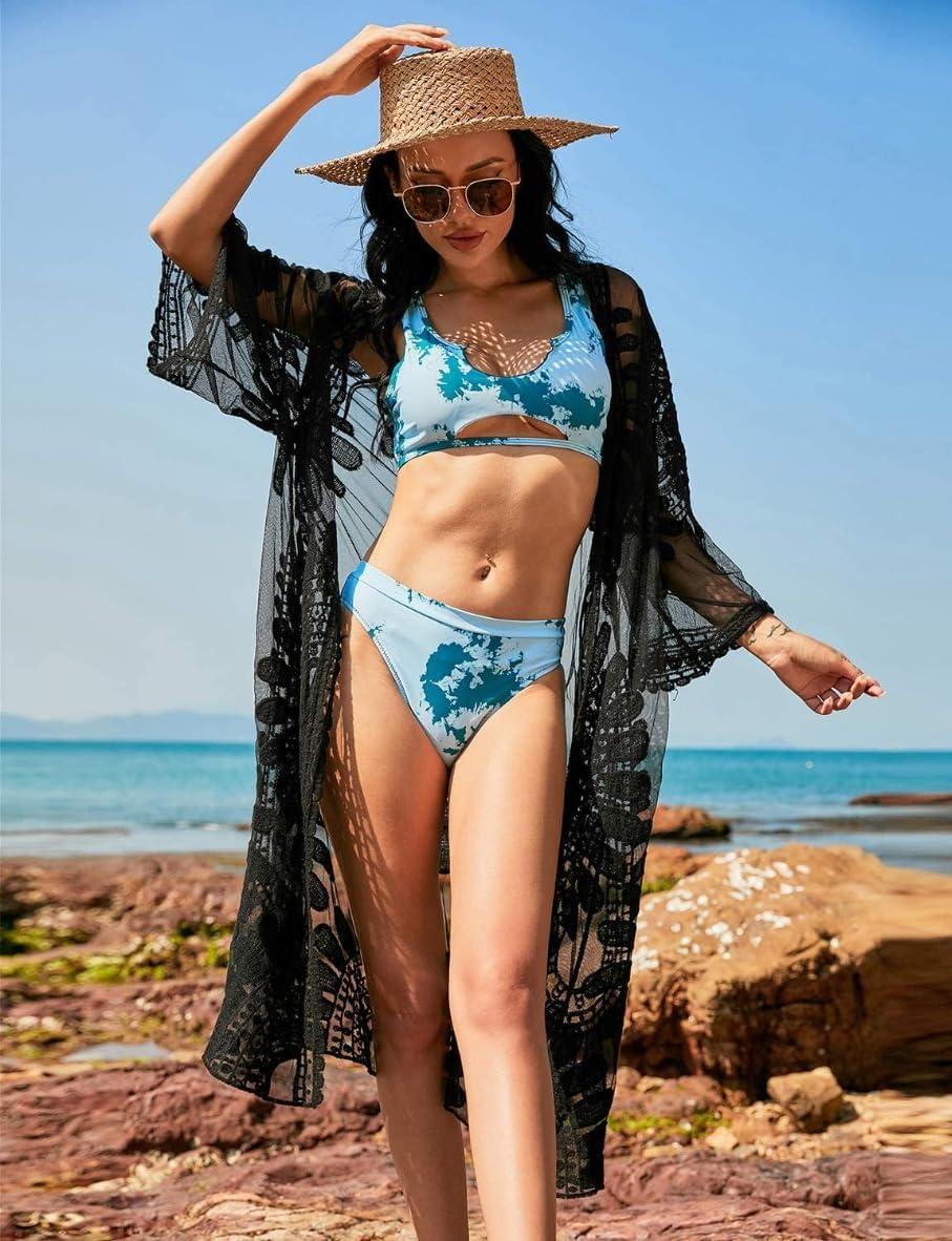 Don’t miss out on our limited-time offer: get a free {accessory} with your purchase of Moss Rose Womens Bathing Suit Cover Up 3/4 Sleeve Mesh Swimsuit Coverup Long Floral Beach Lace Kimono Cardigan(Black).