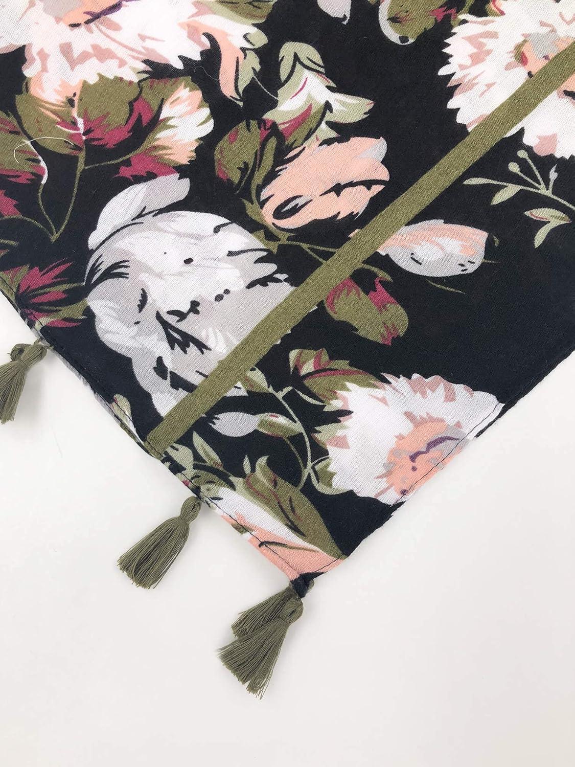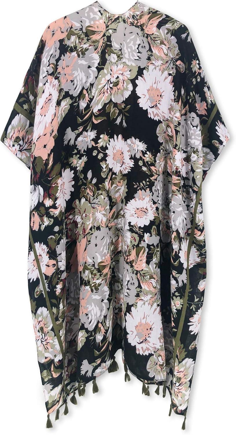 Moss Rose Women’s Beach Cover up Swimsuit Kimono Cardigan with Bohemian Floral Print(Black / Army)