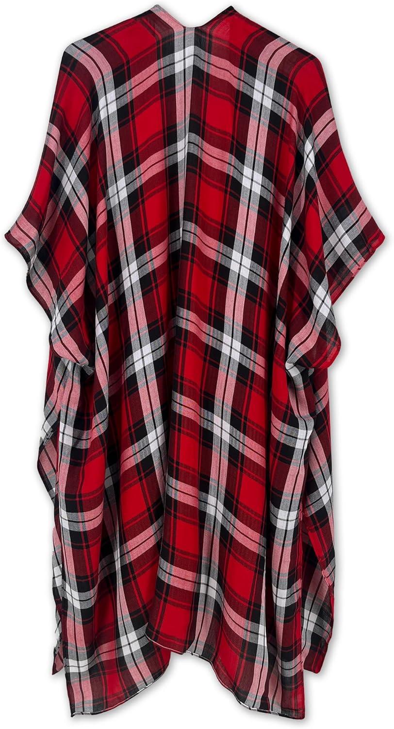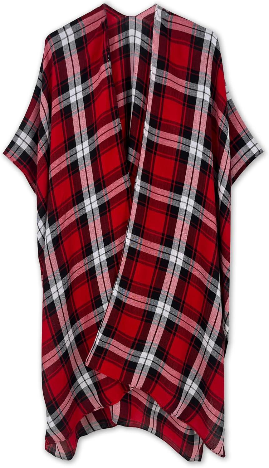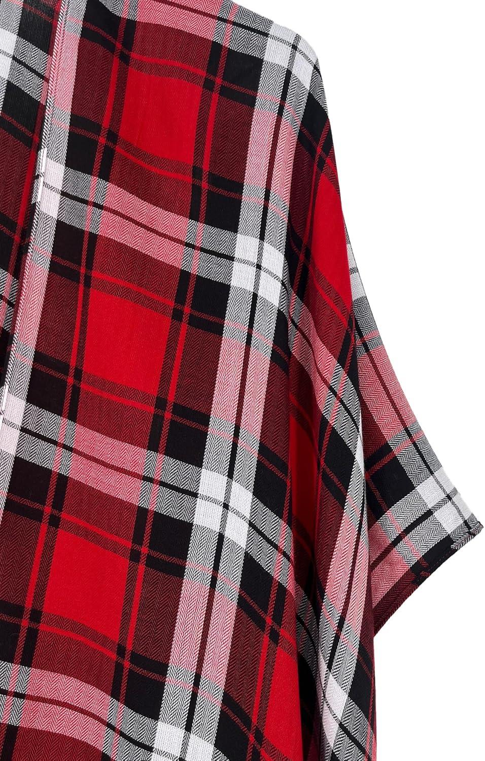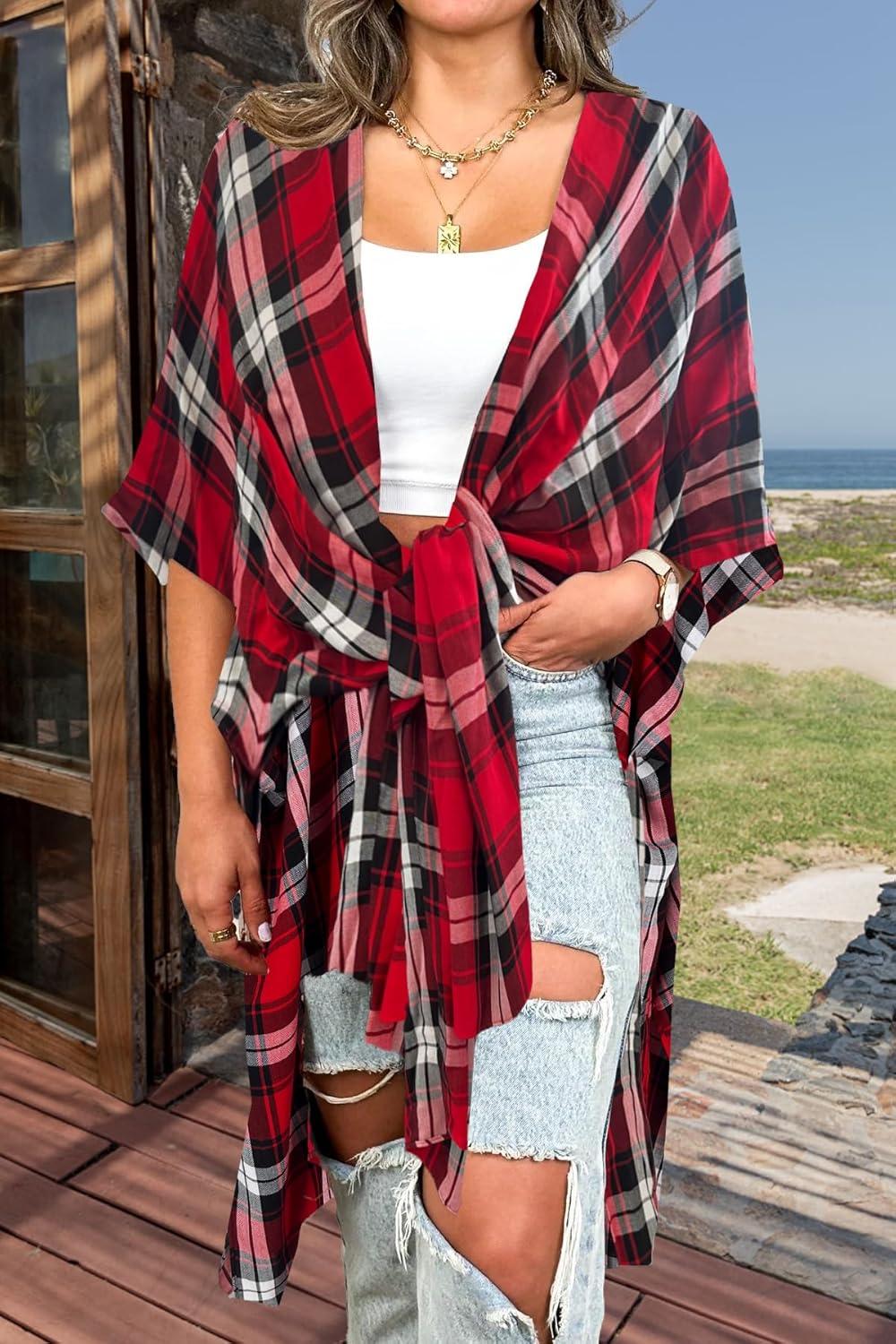 Moss Rose Women’s Beach Cover up Swimsuit Kimono with Bohemian Floral Print, Loose Casual Resort Wear(B Red Black Plaid)
