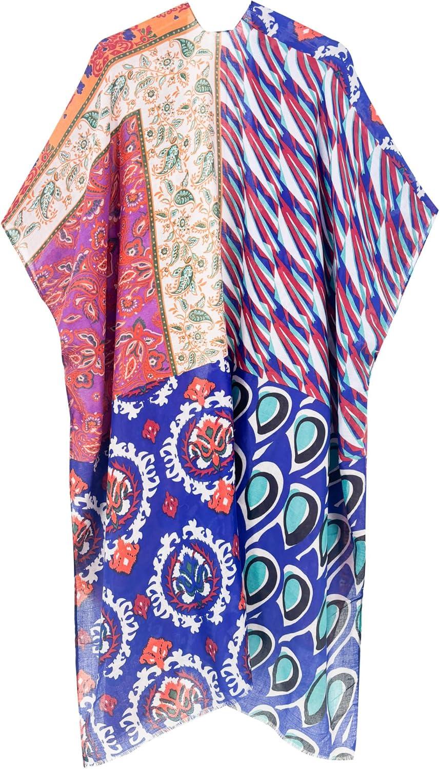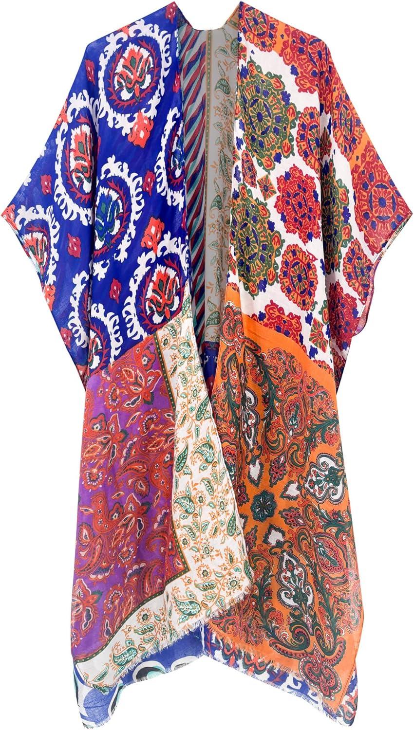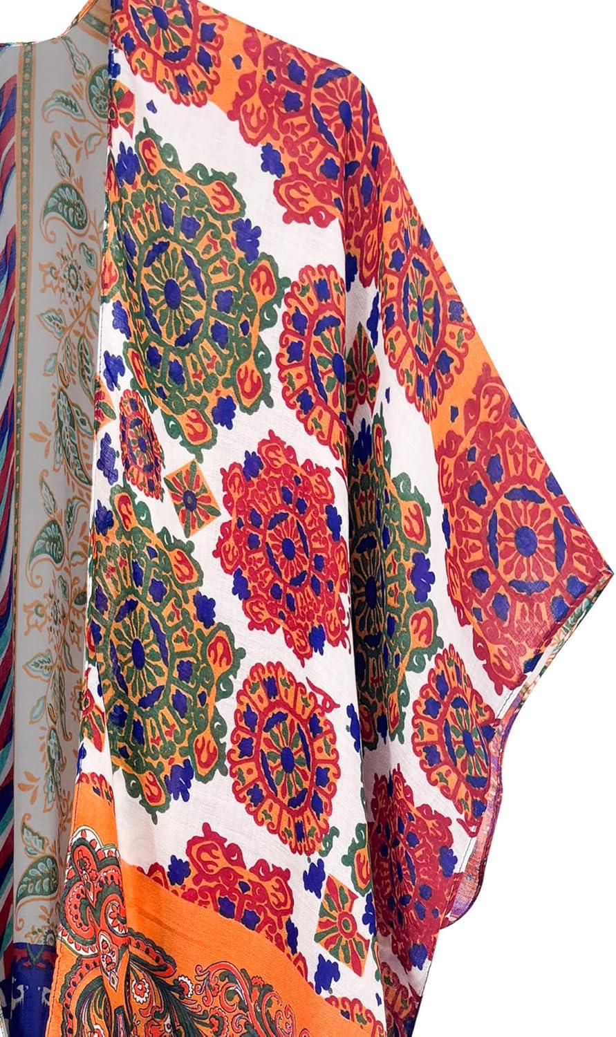 Moss Rose Women’s Beach Cover up Swimsuit Kimono with Bohemian Floral Print, Loose Casual Resort Wear(D Multicolor Print)