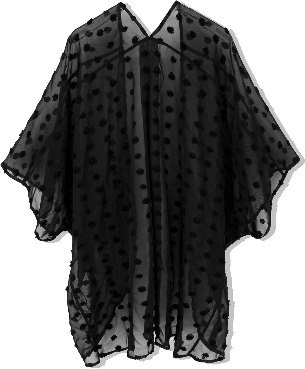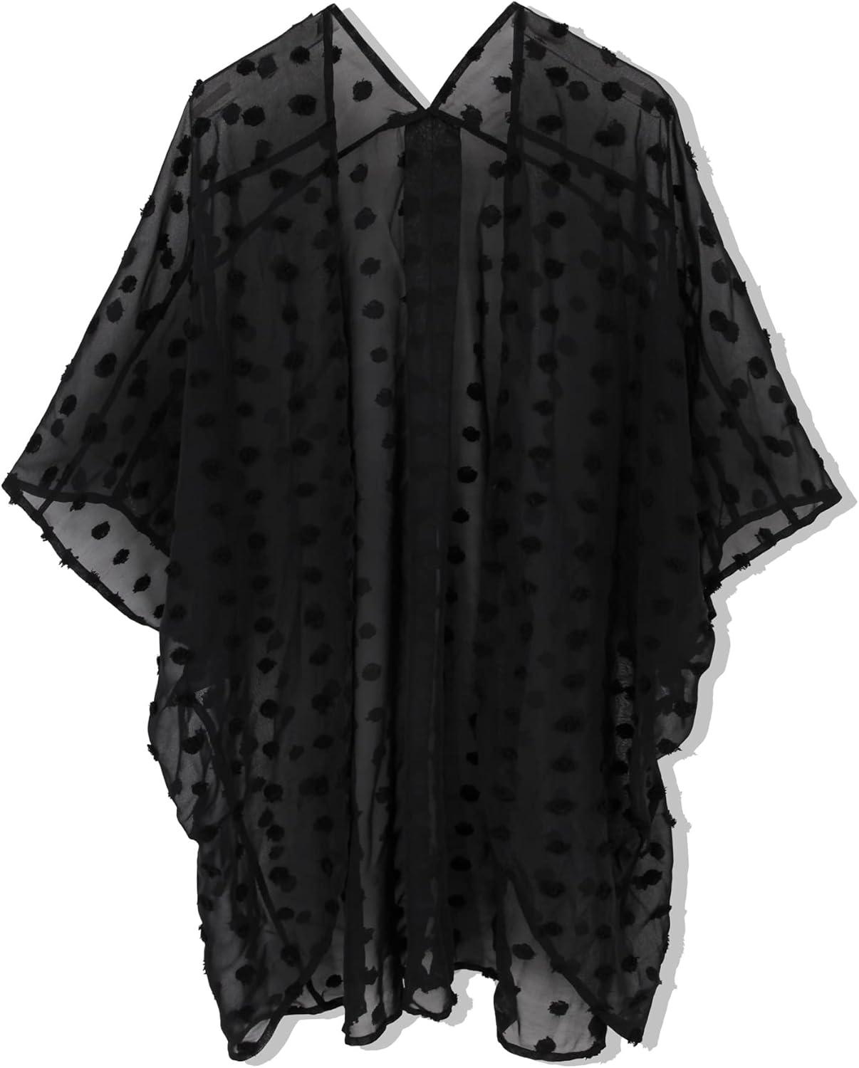 Moss Rose Women’s Beach Kimono Coverup Sheer Chiffon Cover Ups, Casual Loose Open Front Cardigan Tops(Black1)