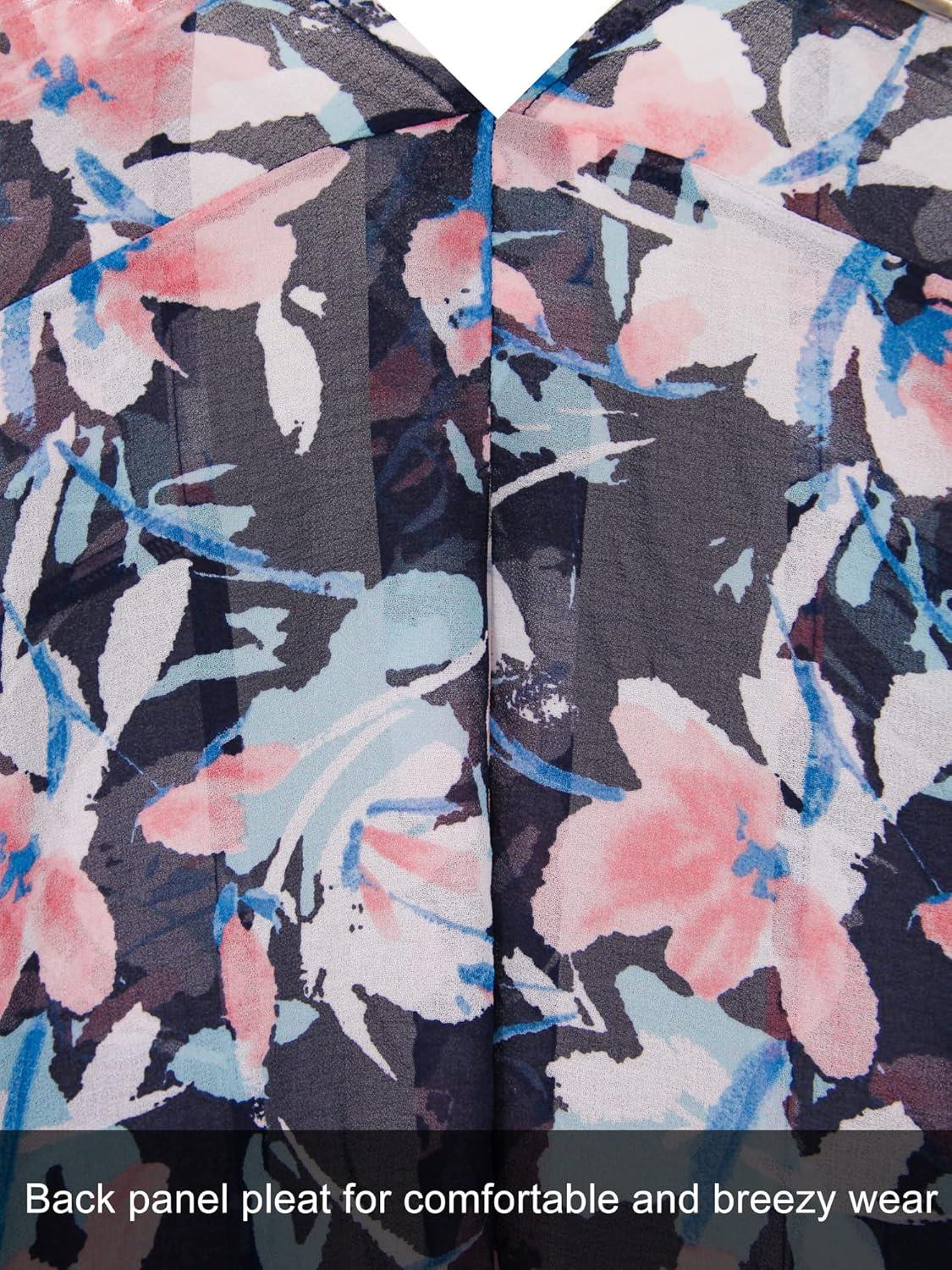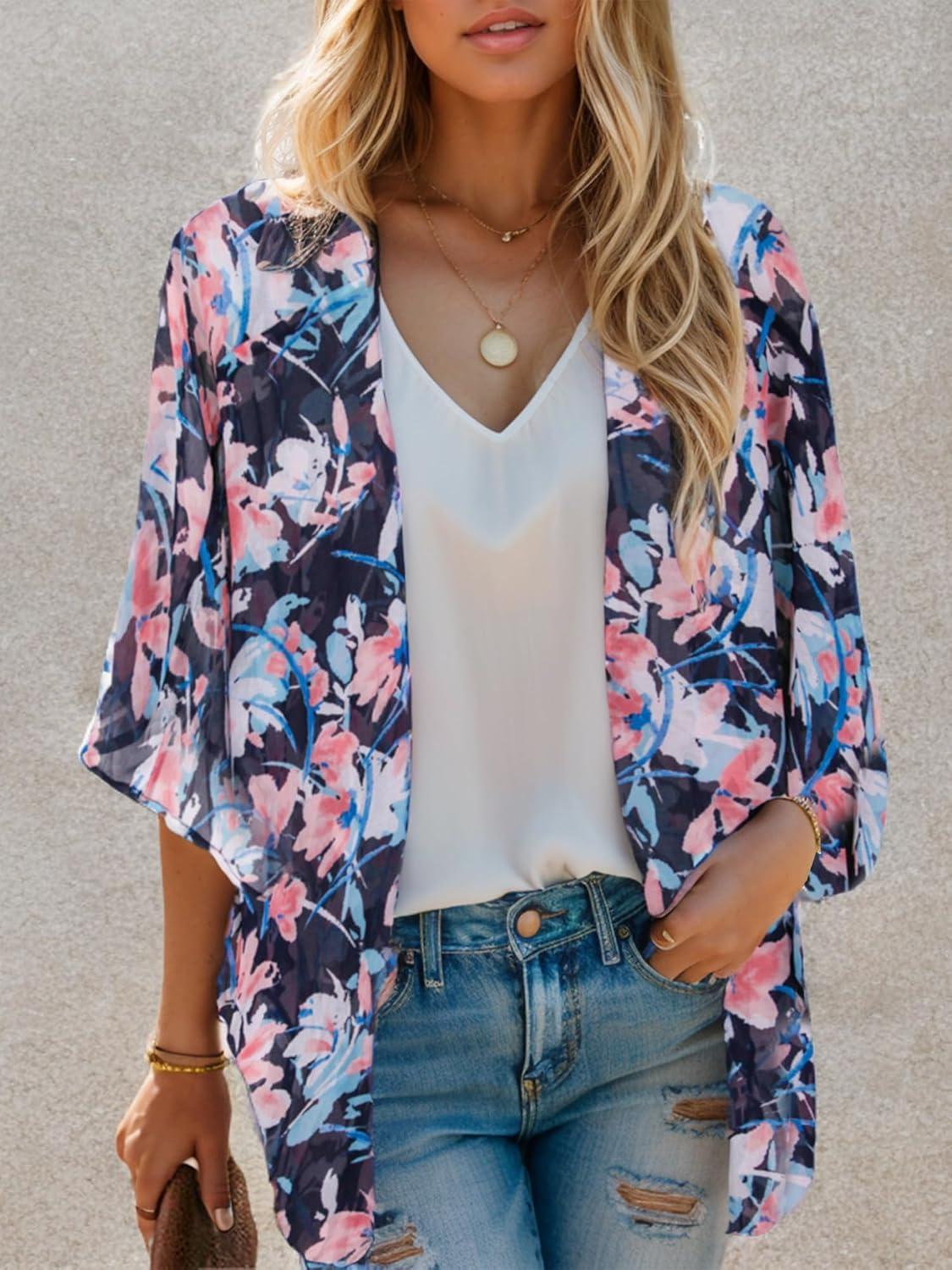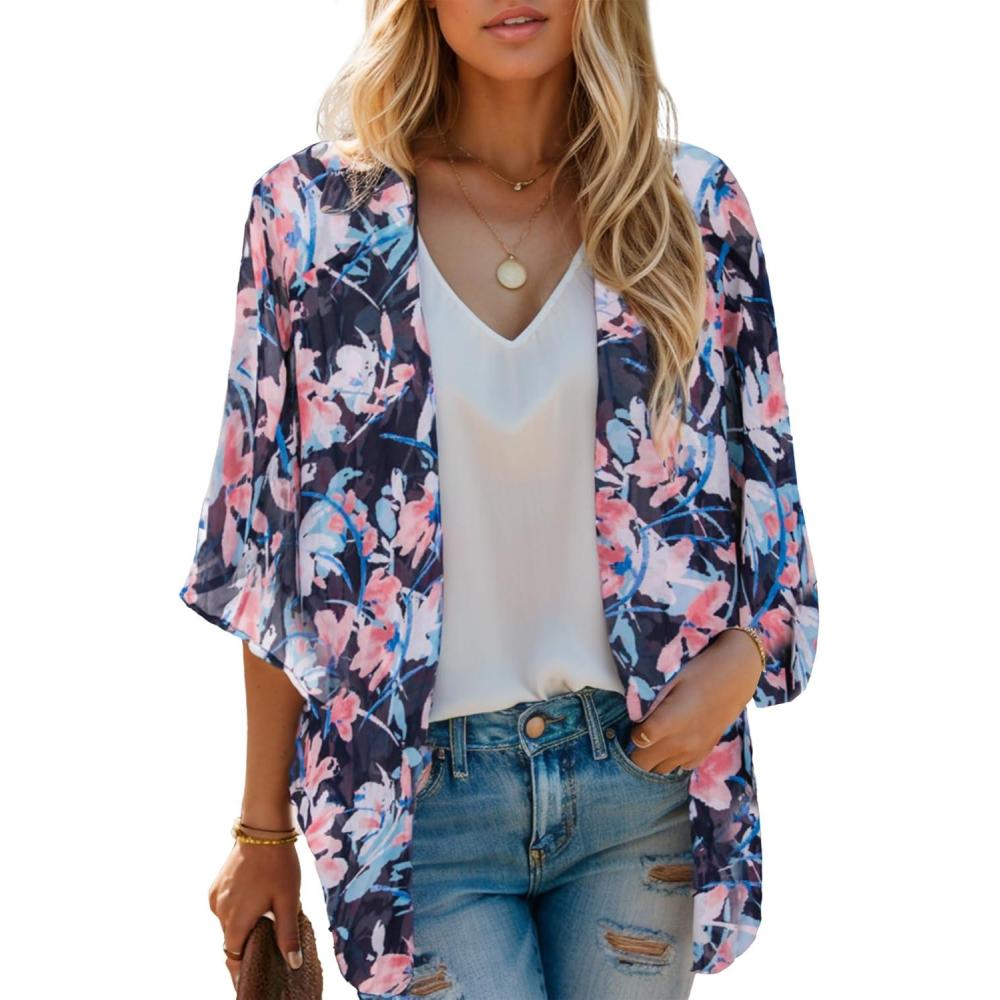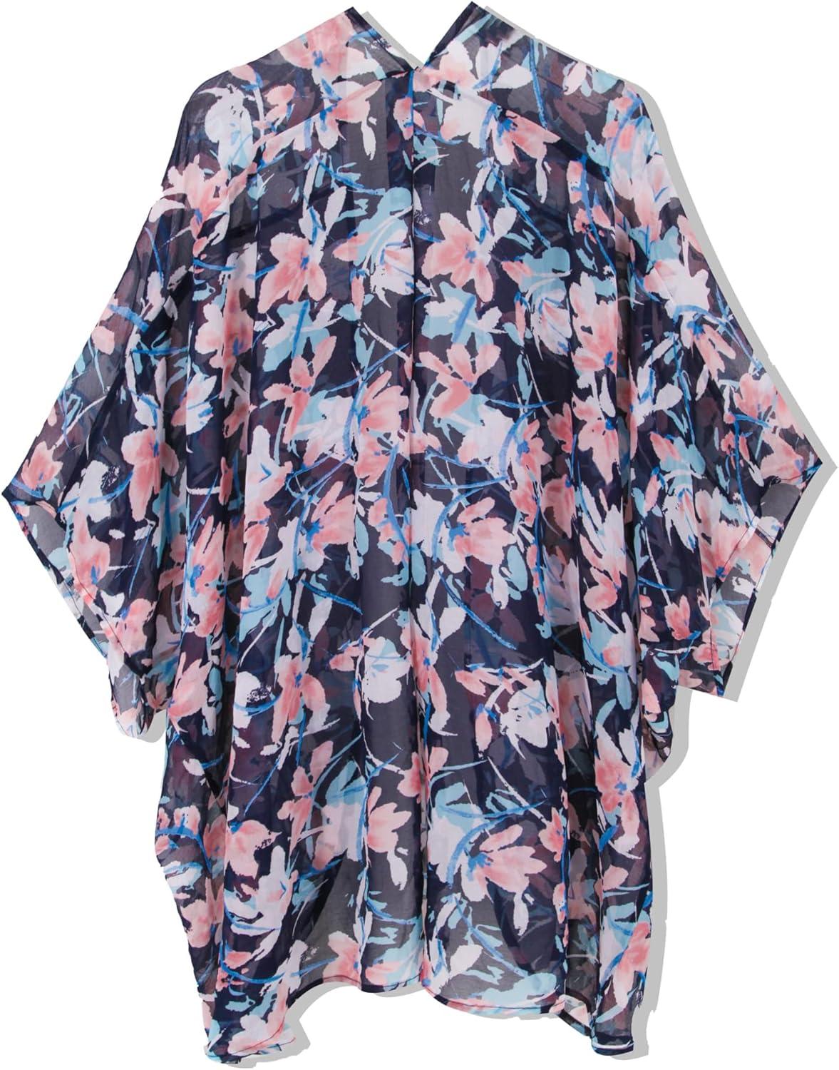 Moss Rose Women's Beach Kimono Coverup Sheer Chiffon Cover Ups, Casual Loose Open Front Cardigan Tops(Blue Flora)