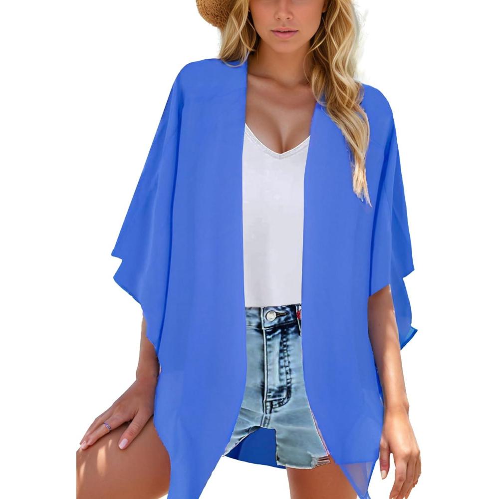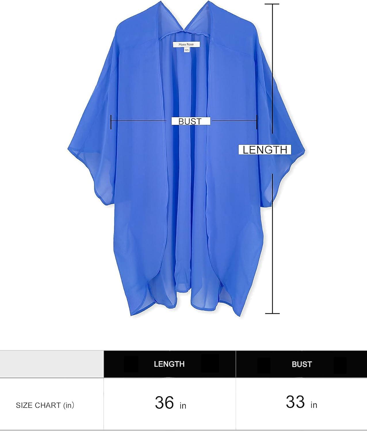 Moss Rose Women's Beach Kimono Coverup Sheer Chiffon Cover Ups, Casual Loose Open Front Cardigan Tops(Blue)