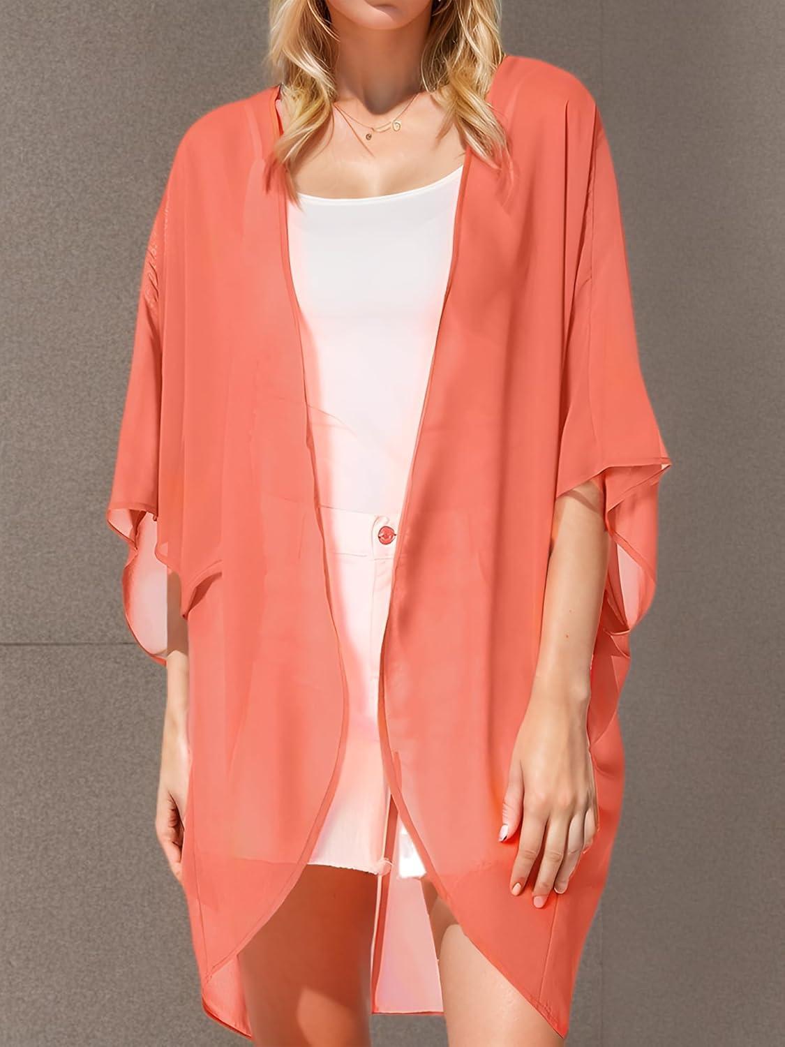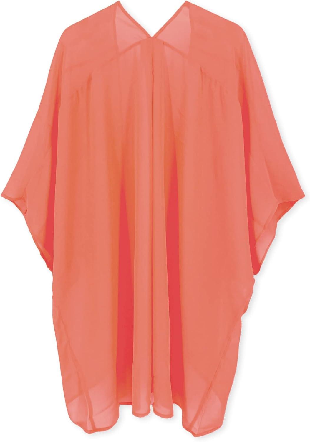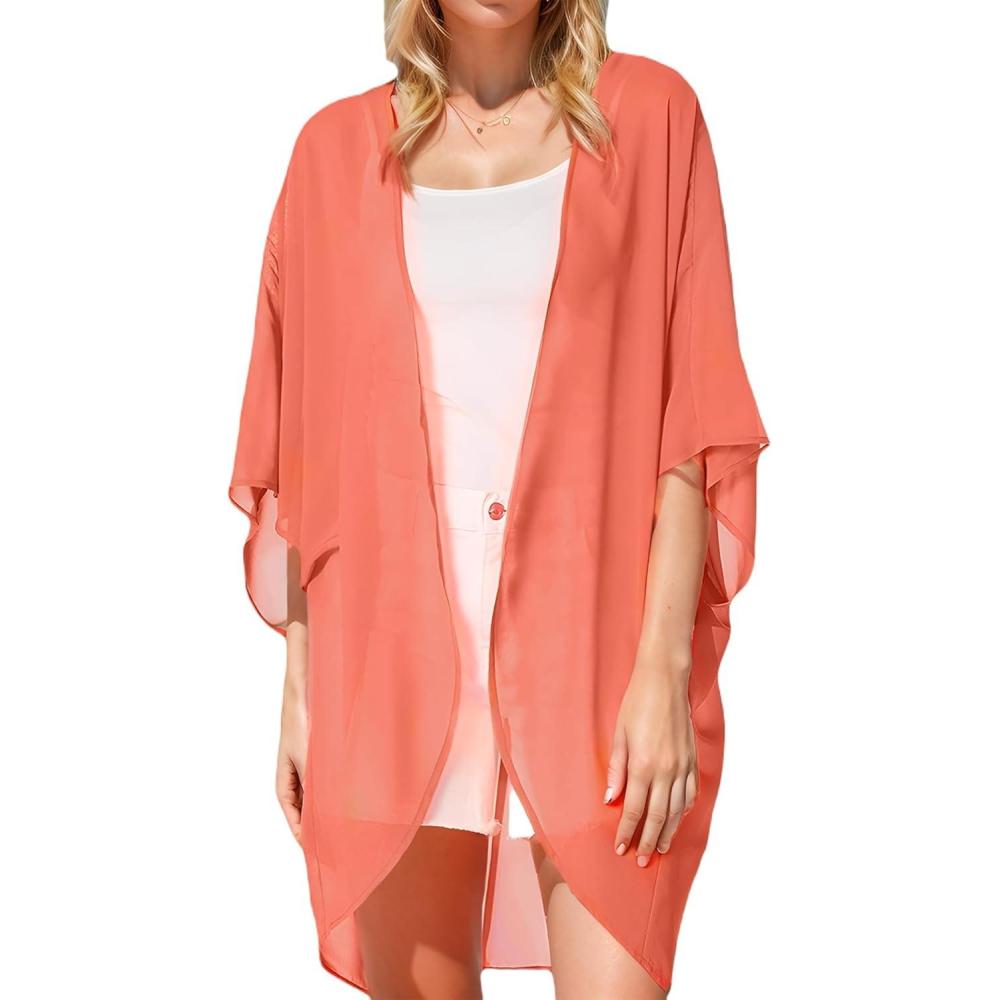 Moss Rose Women's Beach Kimono Coverup Sheer Chiffon Cover Ups, Casual Loose Open Front Cardigan Tops(Bright Orange1)