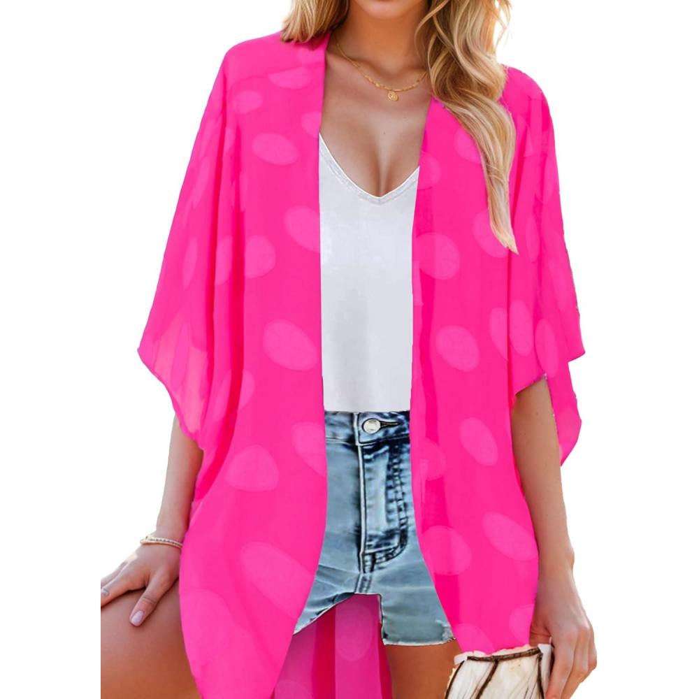 Moss Rose Women’s Beach Kimono Coverup Sheer Chiffon Cover Ups, Casual Loose Open Front Cardigan Tops(Rose)