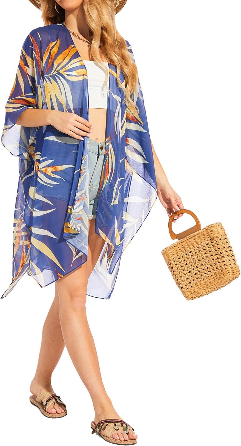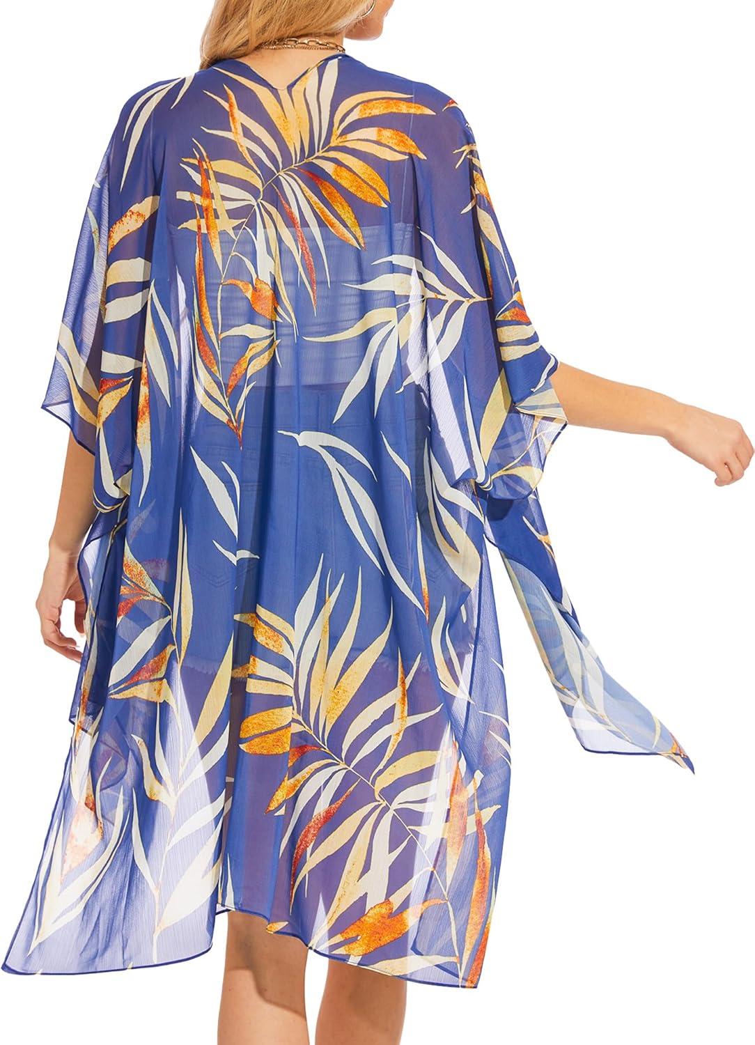 imageMoss Rose Womens Chiffon Long Kimono Beach Cover up for Summer Bathing Suits Cardigans Casual Loose SwimwearAblue
