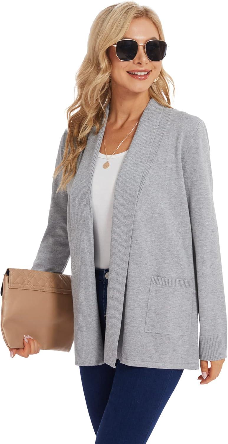 imageMoss Rose Womens Classic Sweaters Cardigan Long Sleeve Knit Coat Outwear with Pocket Available in Plus SizeLight Gray