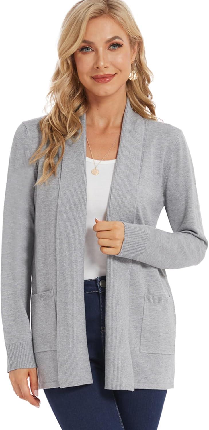 Moss Rose Women's Classic Sweaters Cardigan Long Sleeve Knit Coat Outwear with Pocket Available in Plus Size(Light Gray)