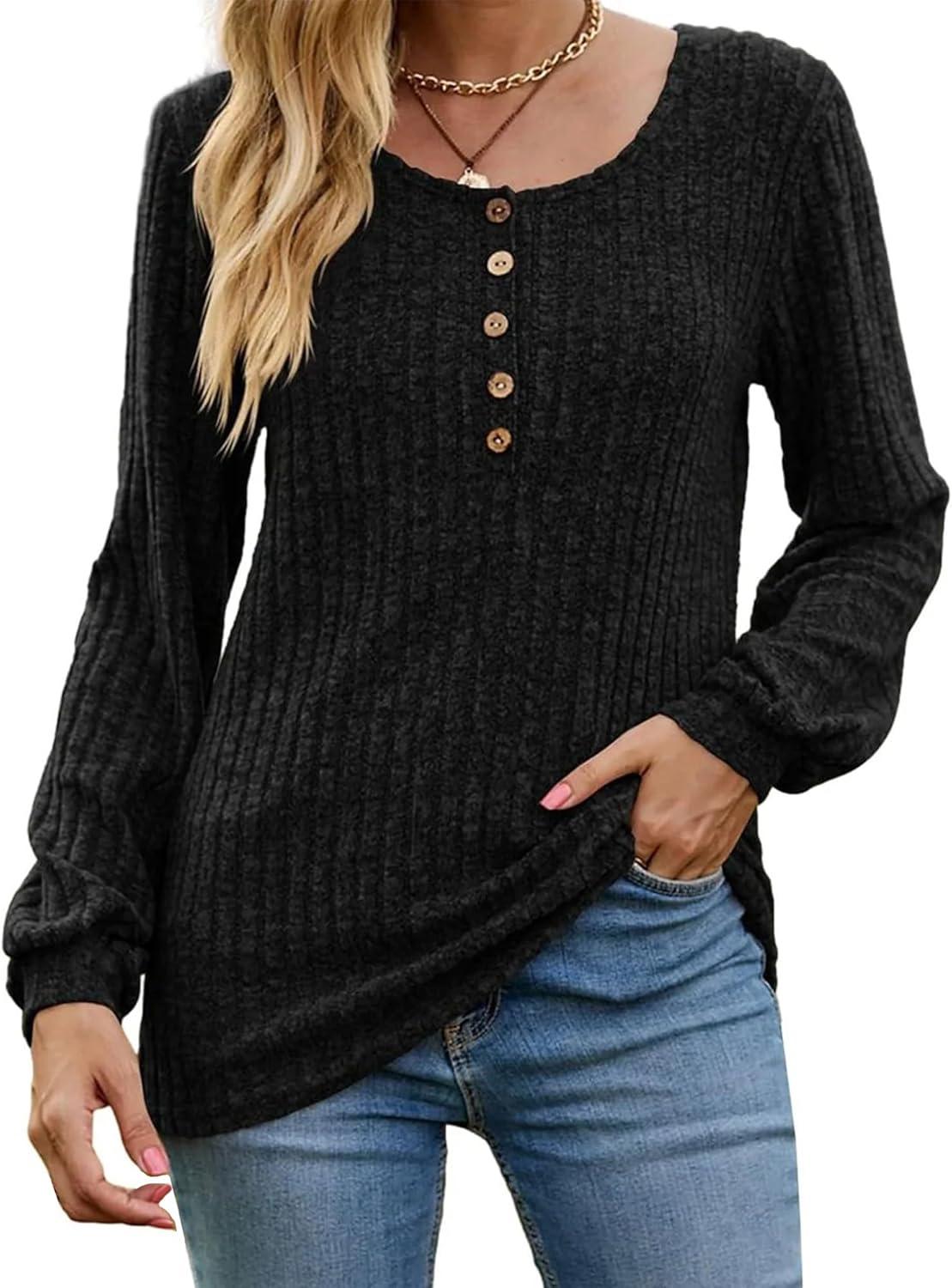 Moss Rose Womens Crew Neck Long Sleeve Tunic Shirts Casual Fall Winter Tops Lightweight Sweaters(Black)