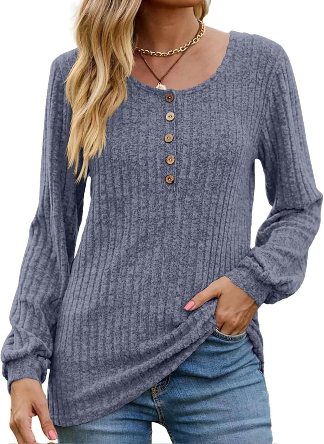 Moss Rose Womens Crew Neck Long Sleeve Tunic Shirts Casual Fall Winter Tops Lightweight Sweaters(Blue)