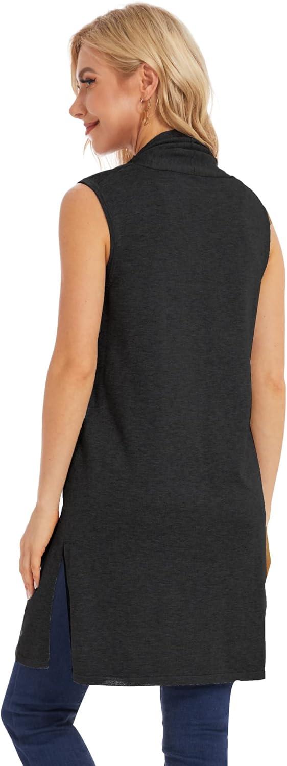 imageMoss Rose Womens Long Knit Cardigan Vest Casual Sleeveless Open Front Draped Duster Vest Available in Plus SizeDark Gray