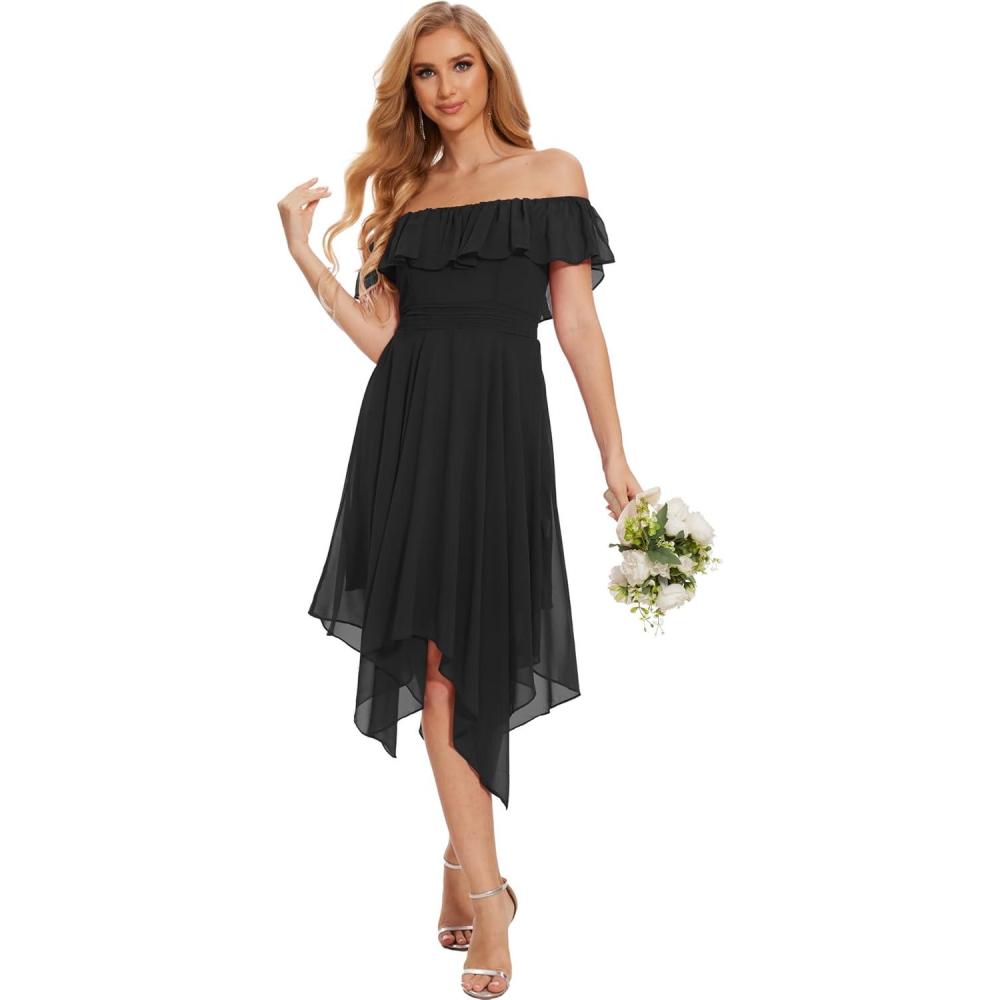 Moss Rose Women’s Off The Shoulder Bridesmaid Dresses Knee Length Formal Cocktail Dresses(Black)