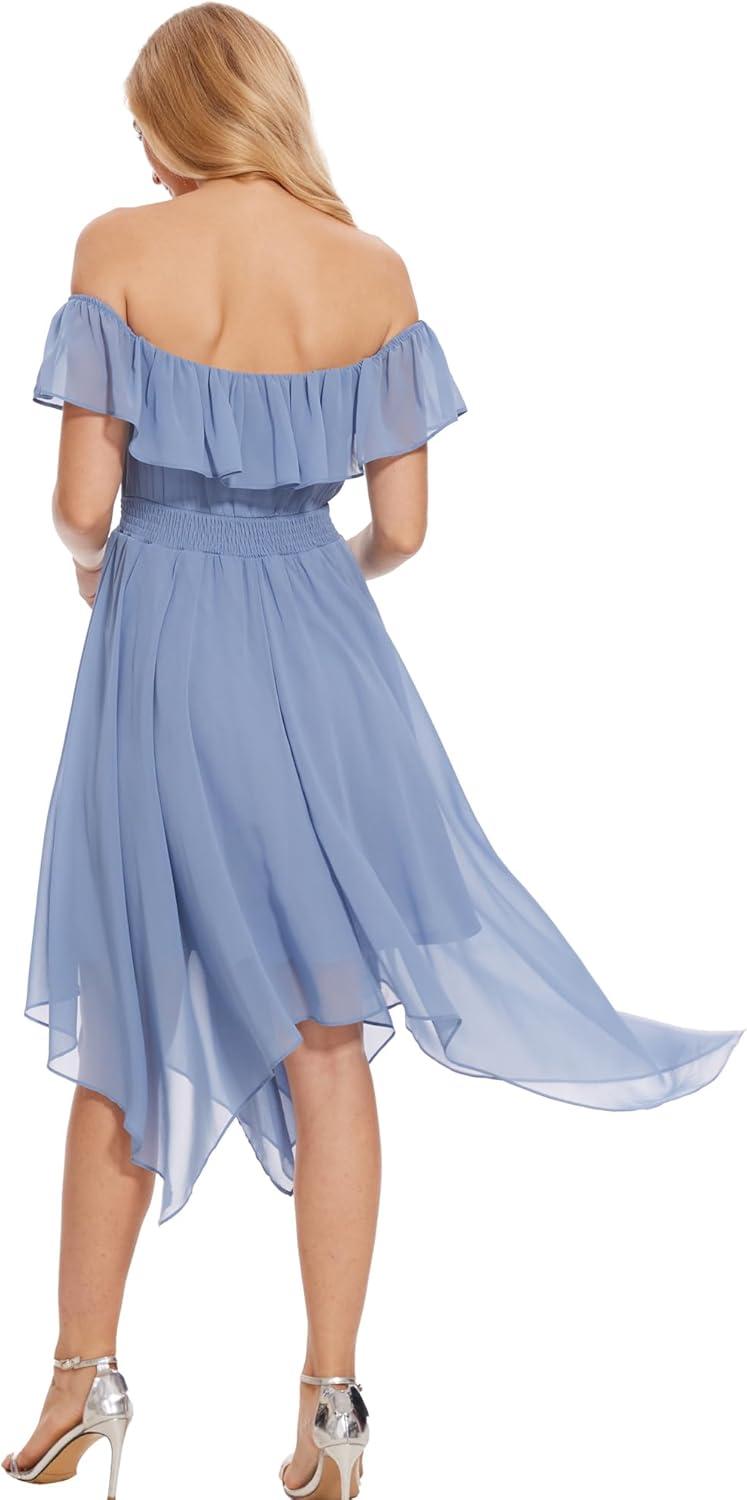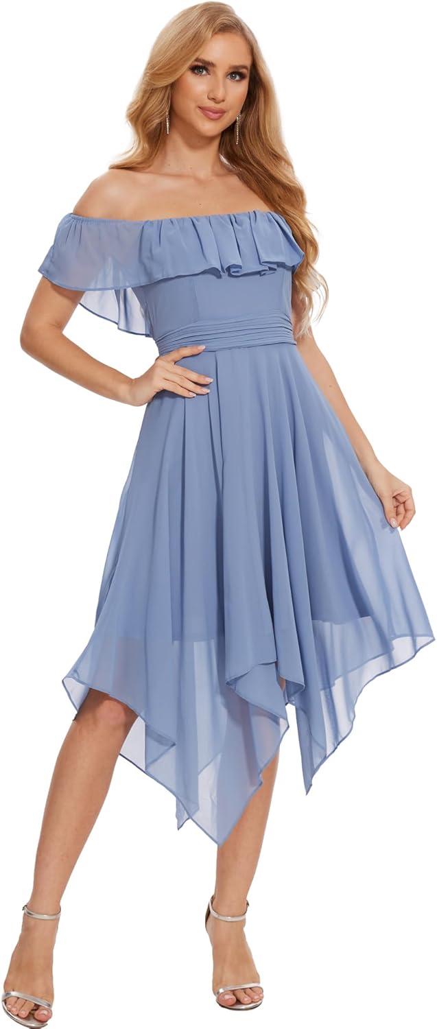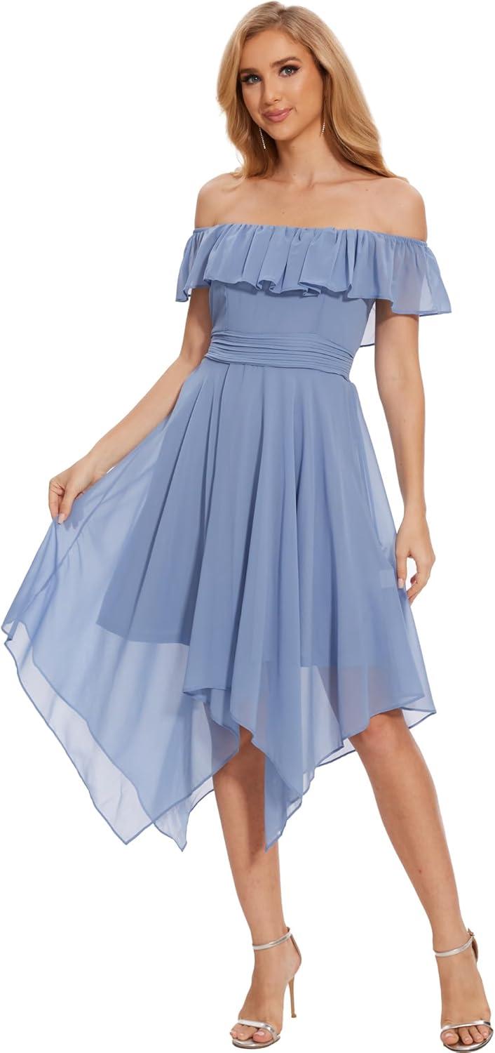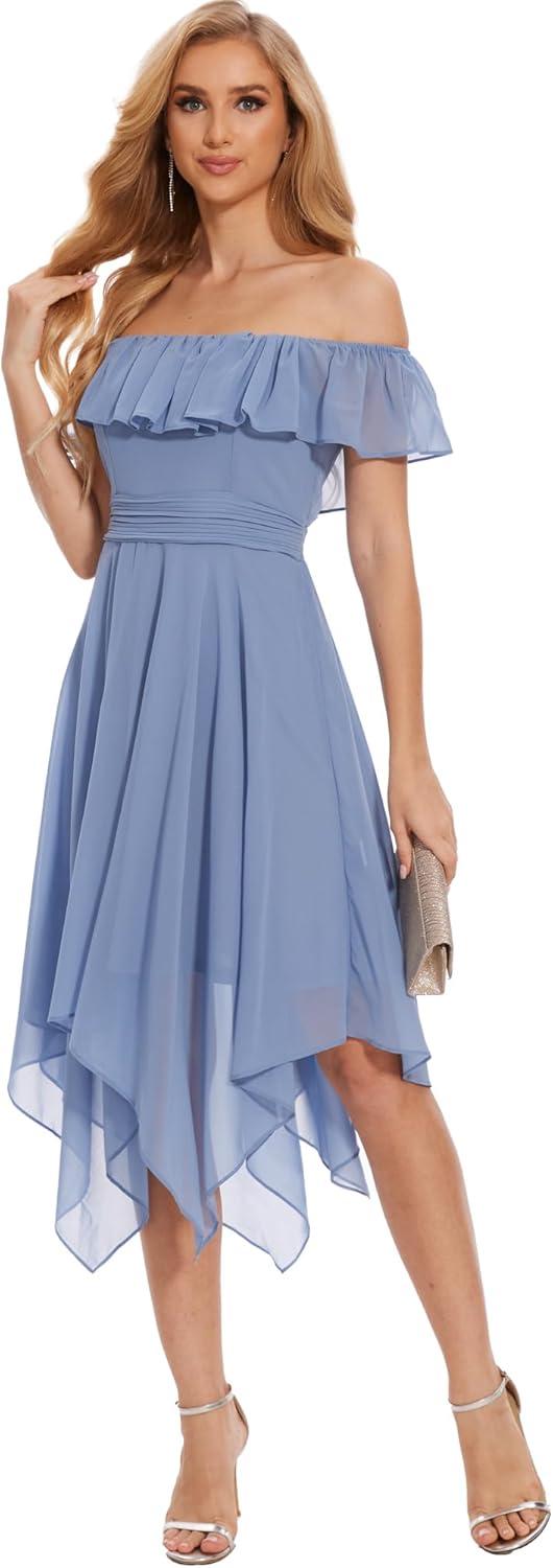 Moss Rose Women’s Off The Shoulder Bridesmaid Dresses Knee Length Formal Cocktail Dresses(Dusty Blue)