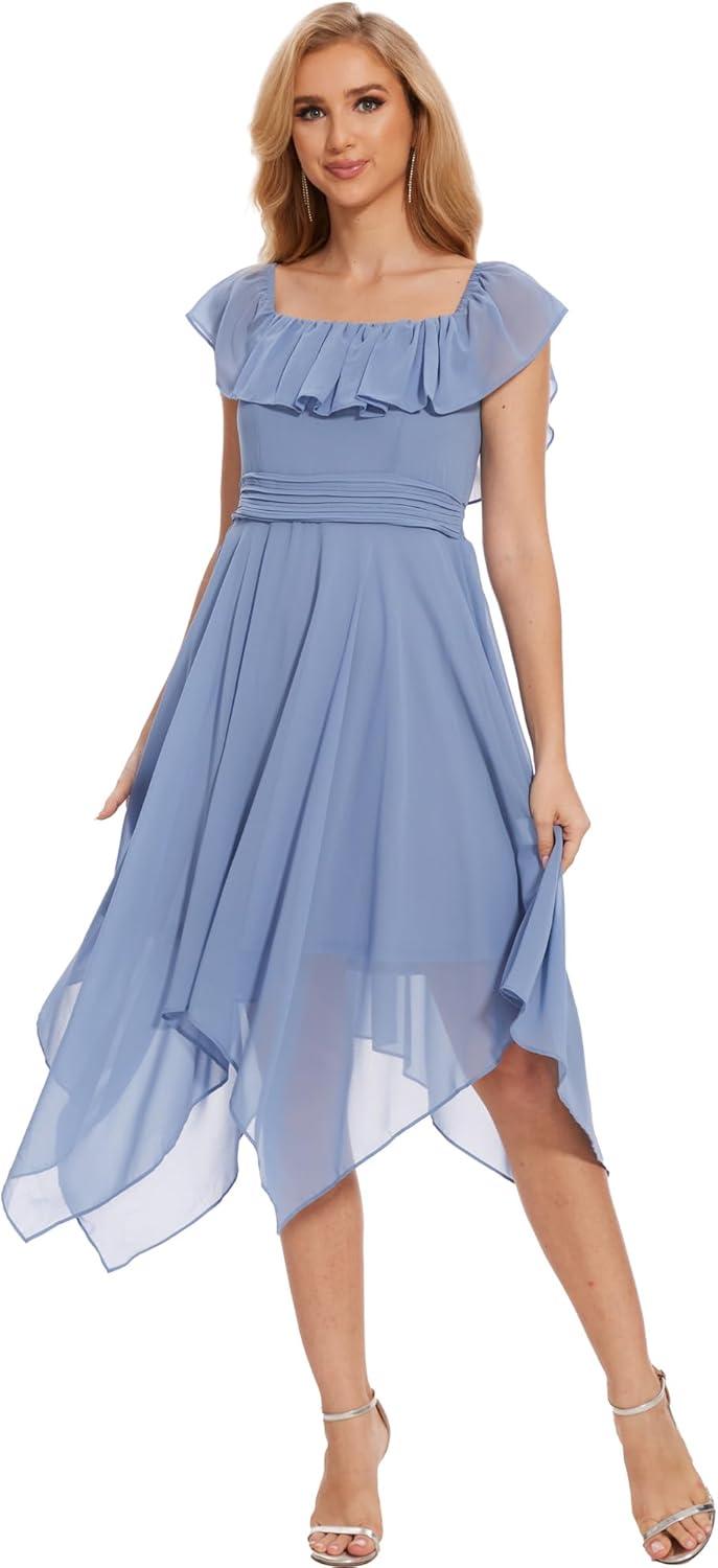 imageMoss Rose Womens Off The Shoulder Bridesmaid Dresses Knee Length Formal Cocktail DressesDusty Blue