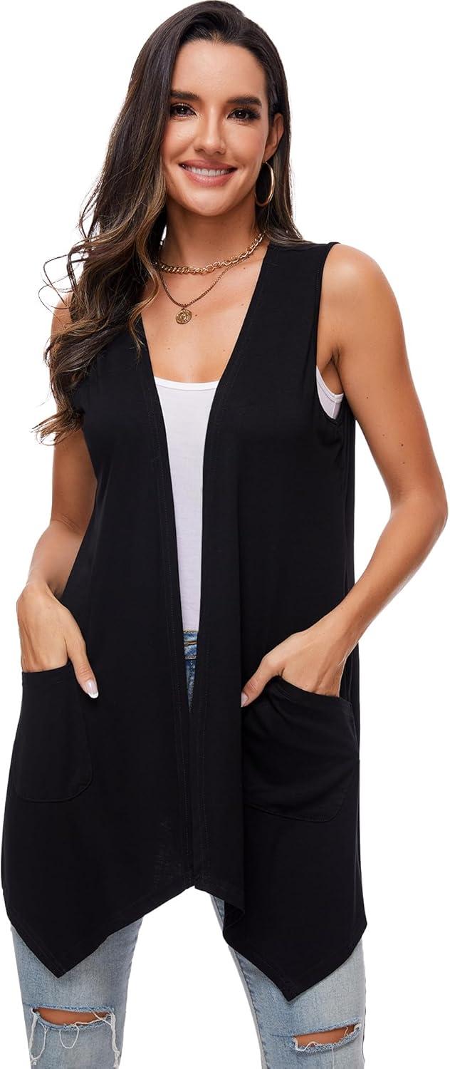 Moss Rose Women's Sleeveless Cardigan Vest Draped Open Front Cardigans Asymmetric Hem(Black)