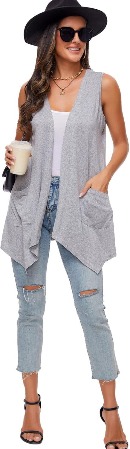 Moss Rose Women's Sleeveless Cardigan Vest Draped Open Front Cardigans Asymmetric Hem(Grey)