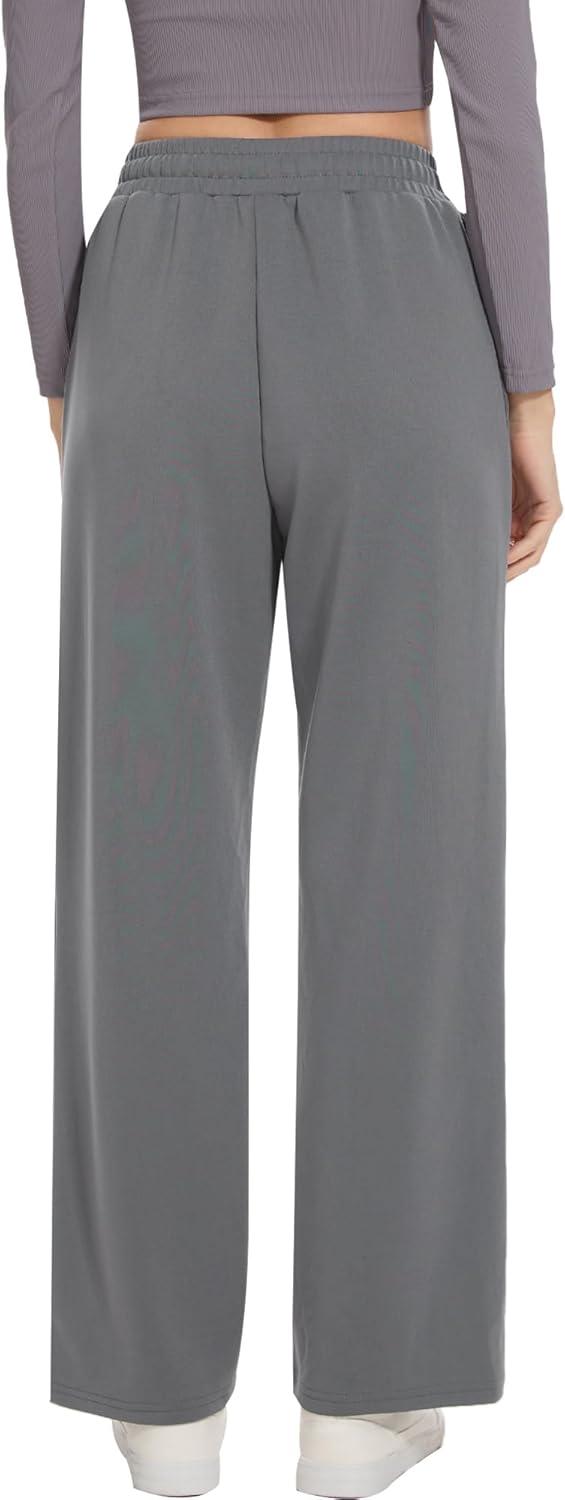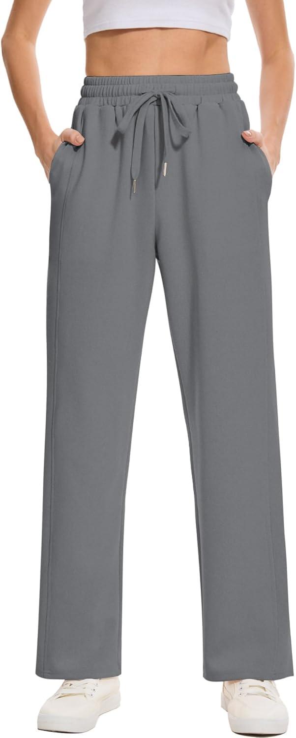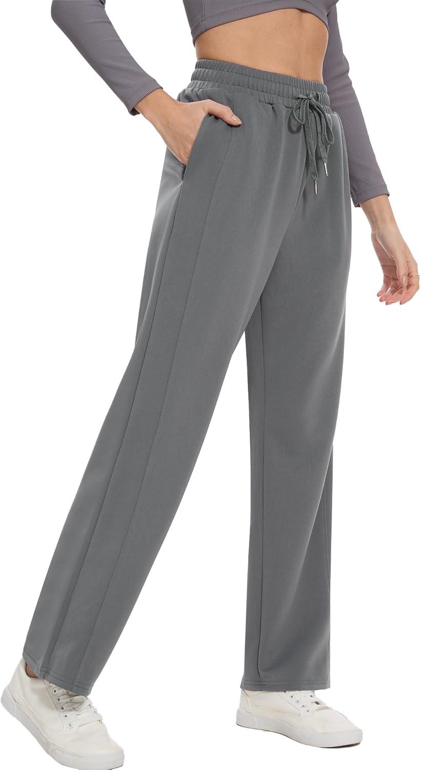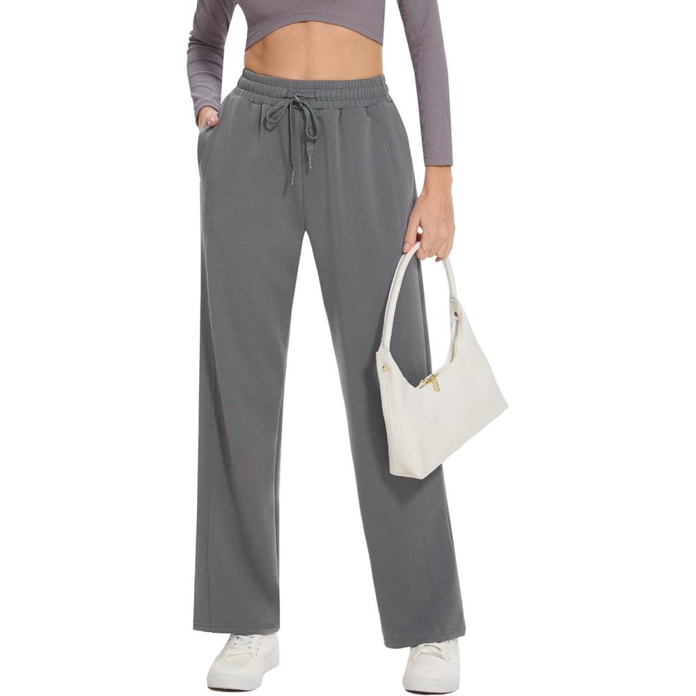 Moss Rose Women’s Straight Leg Casual Sweatpants Elastic Waisted Workout Pants with Pockets(Grey)