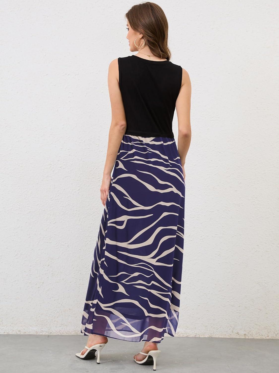 imageMoss Rose Womens Summer Dress Sleeveless Maxi Dresses Empire Waist Floral Print Casual Long DressBlackblue