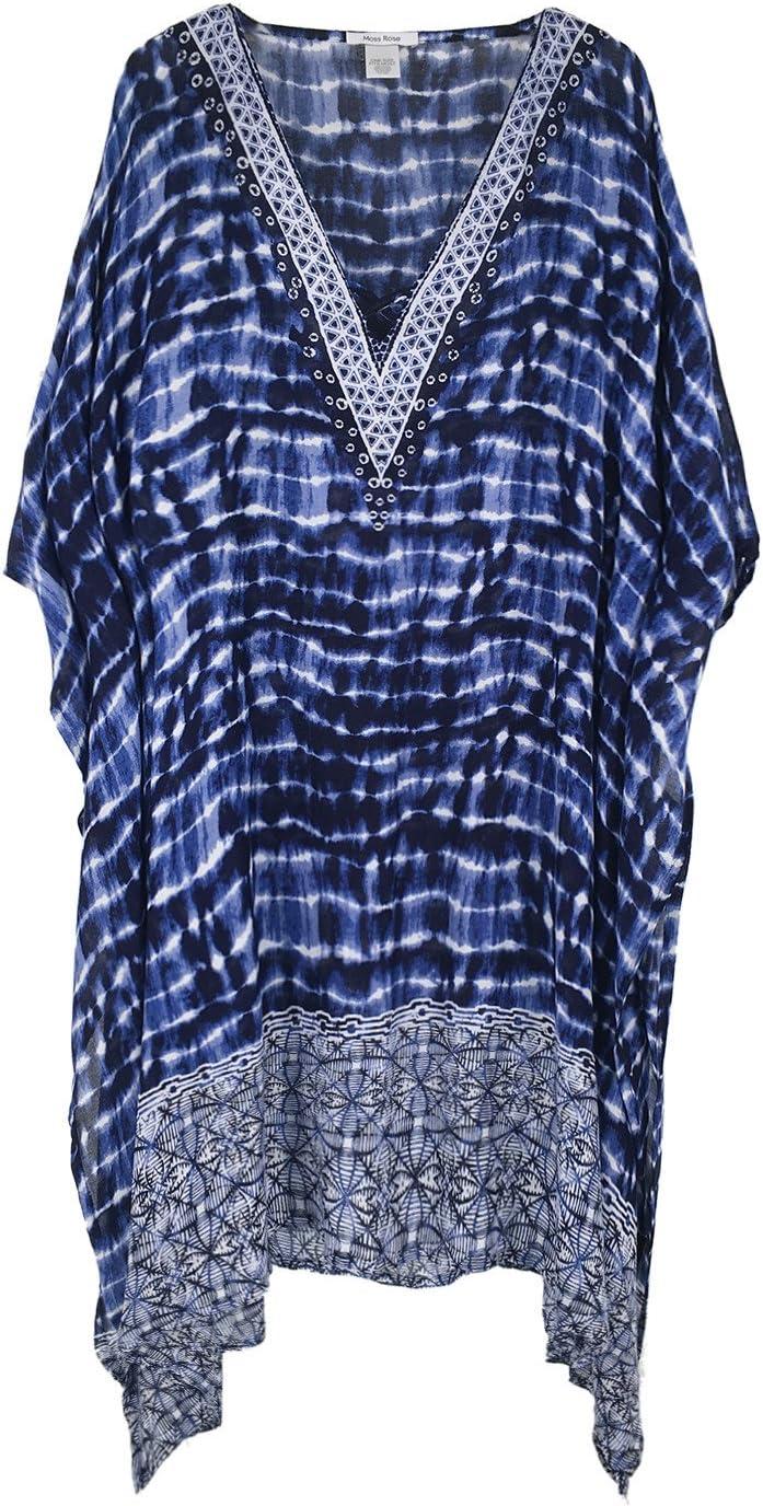 Moss Rose Women’s Swimsuit Cover up Beach Kaftan for Bathing Suit with Floral Pattern(A Blue)