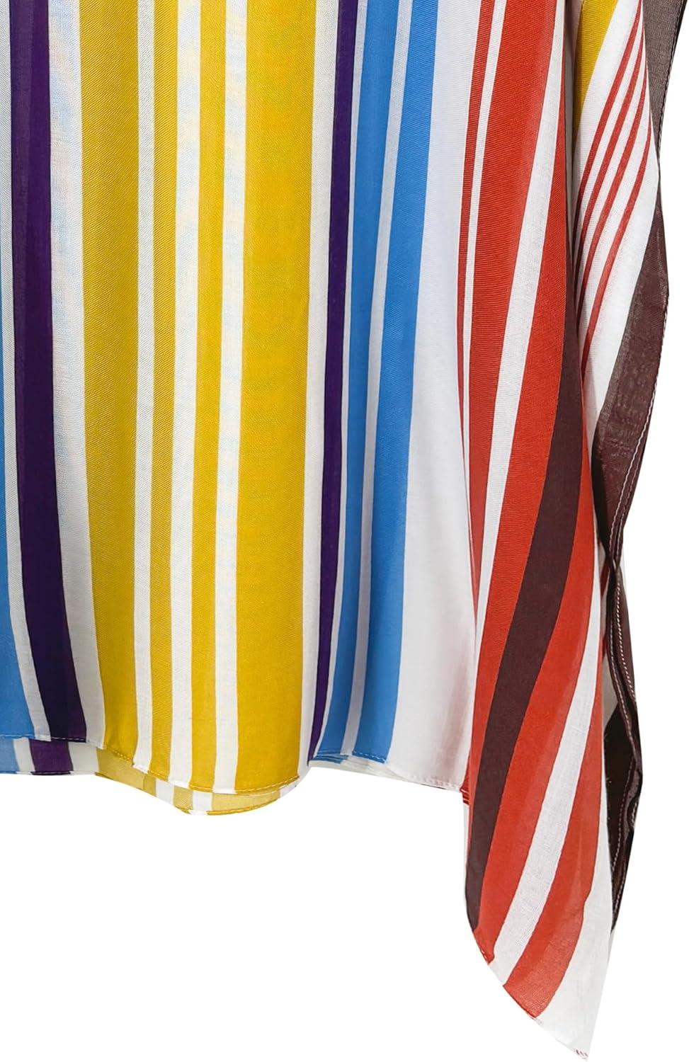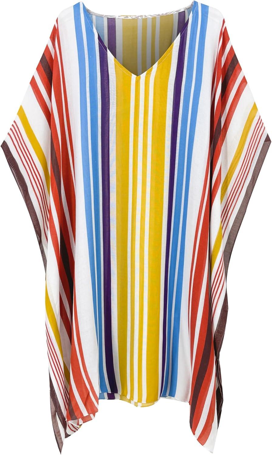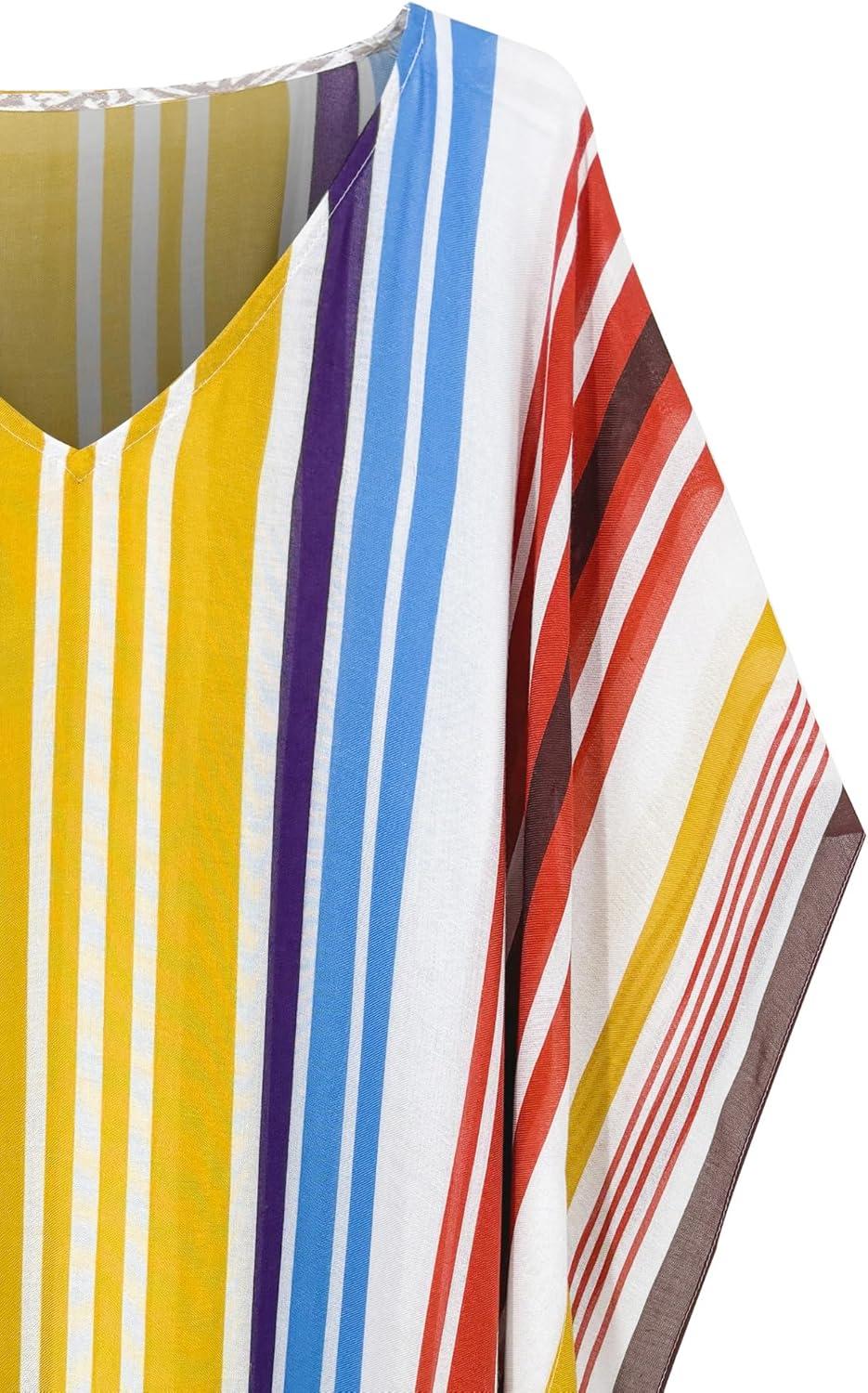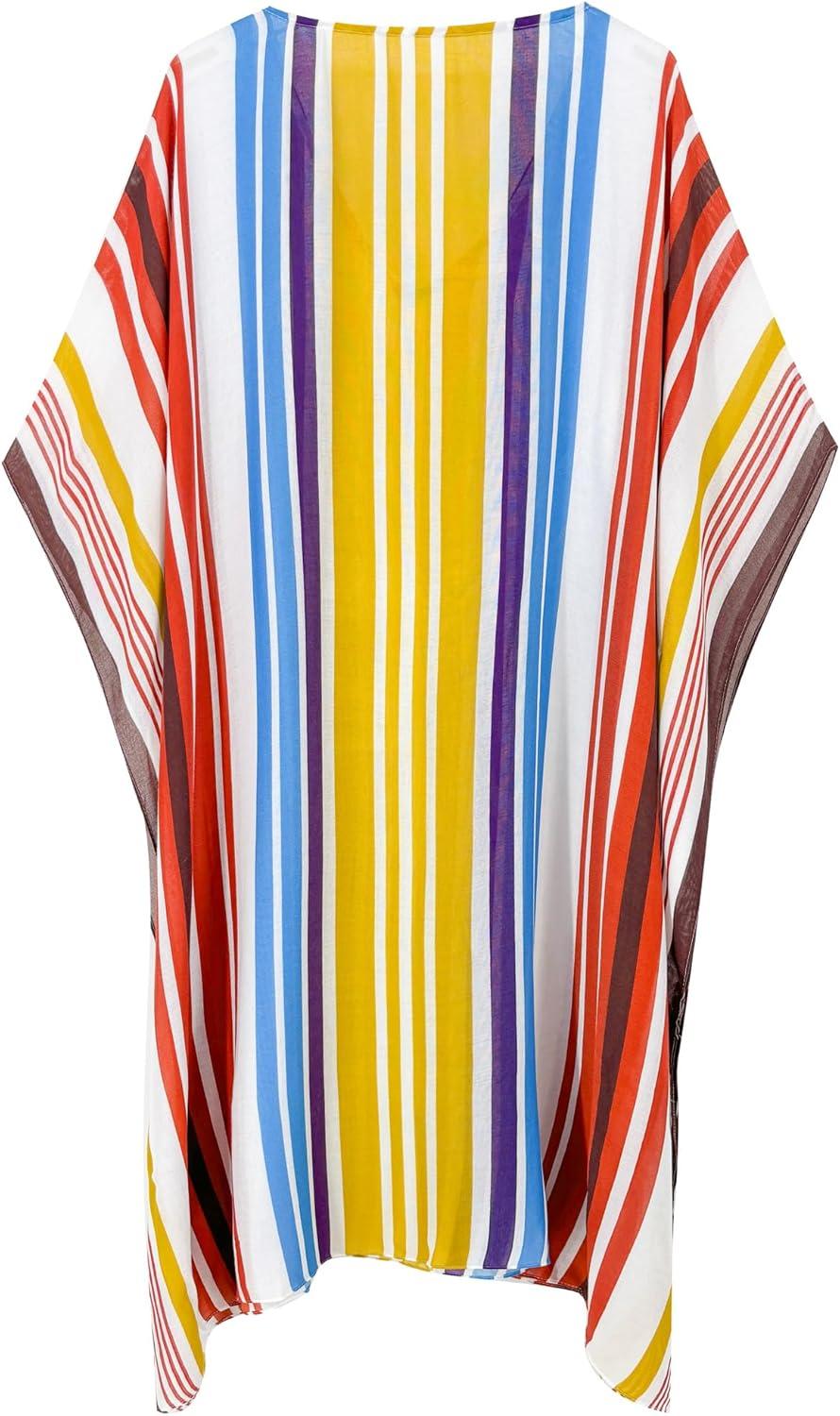Moss Rose Women’s Swimsuit Cover up Beach Kaftan for Bathing Suit with Floral Pattern(E Rainbow Stripe)