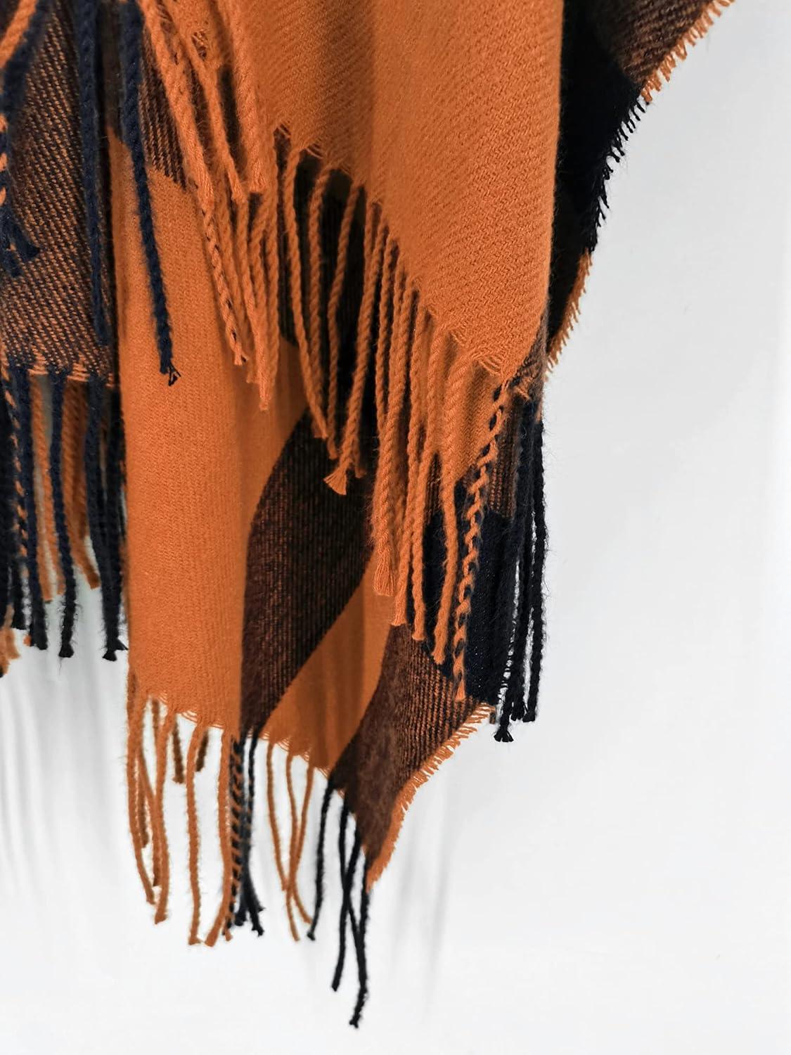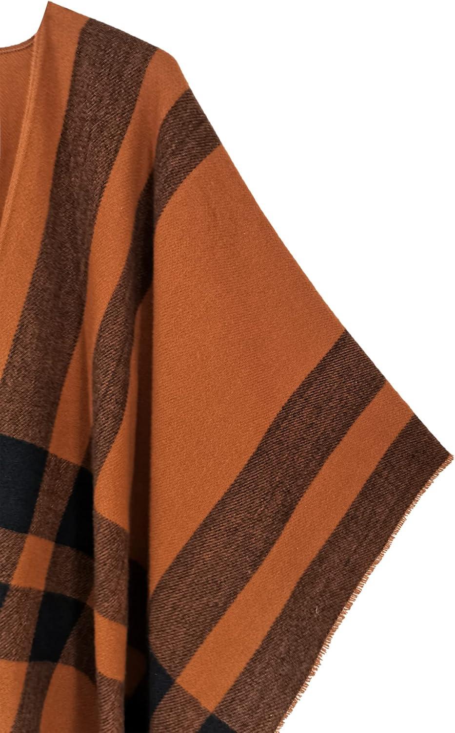 Moss Rose Women's Travel Plaid Shawl Wrap Open Front Poncho Cape for Fall Winter(B Brown)