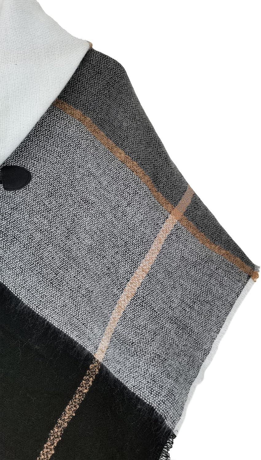 Moss Rose Women’s Travel Plaid Shawl Wrap Open Front Poncho Cape for Fall Winter(White Black)