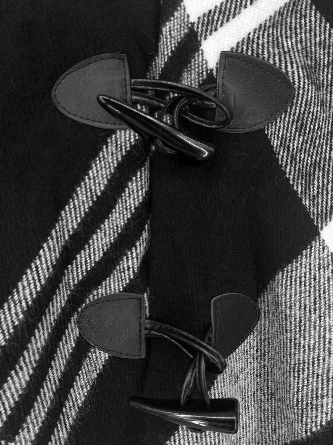 Moss Rose Women's Travel Plaid Shawl Wrap Open Front Poncho Cape for Fall Winter(White Black)